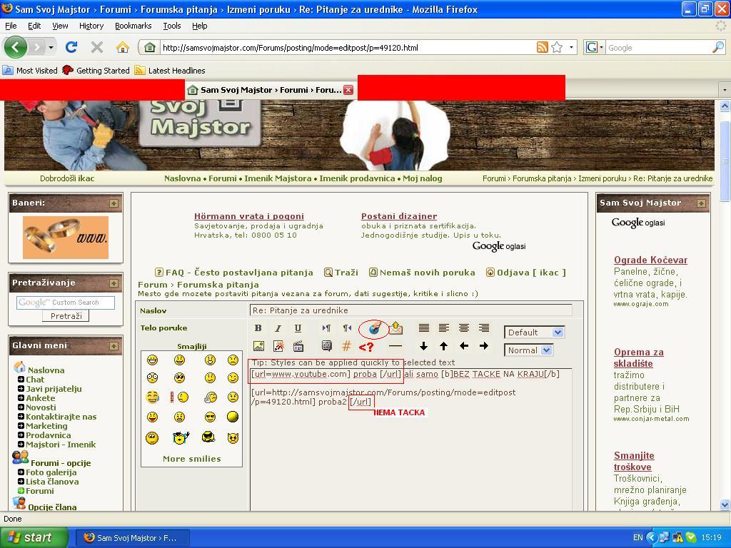ovaj forum sve više počinje da liči na vašar a sve manje na SAMSVOJMAJSTOR. Gde vam je uredjivačka politika.
