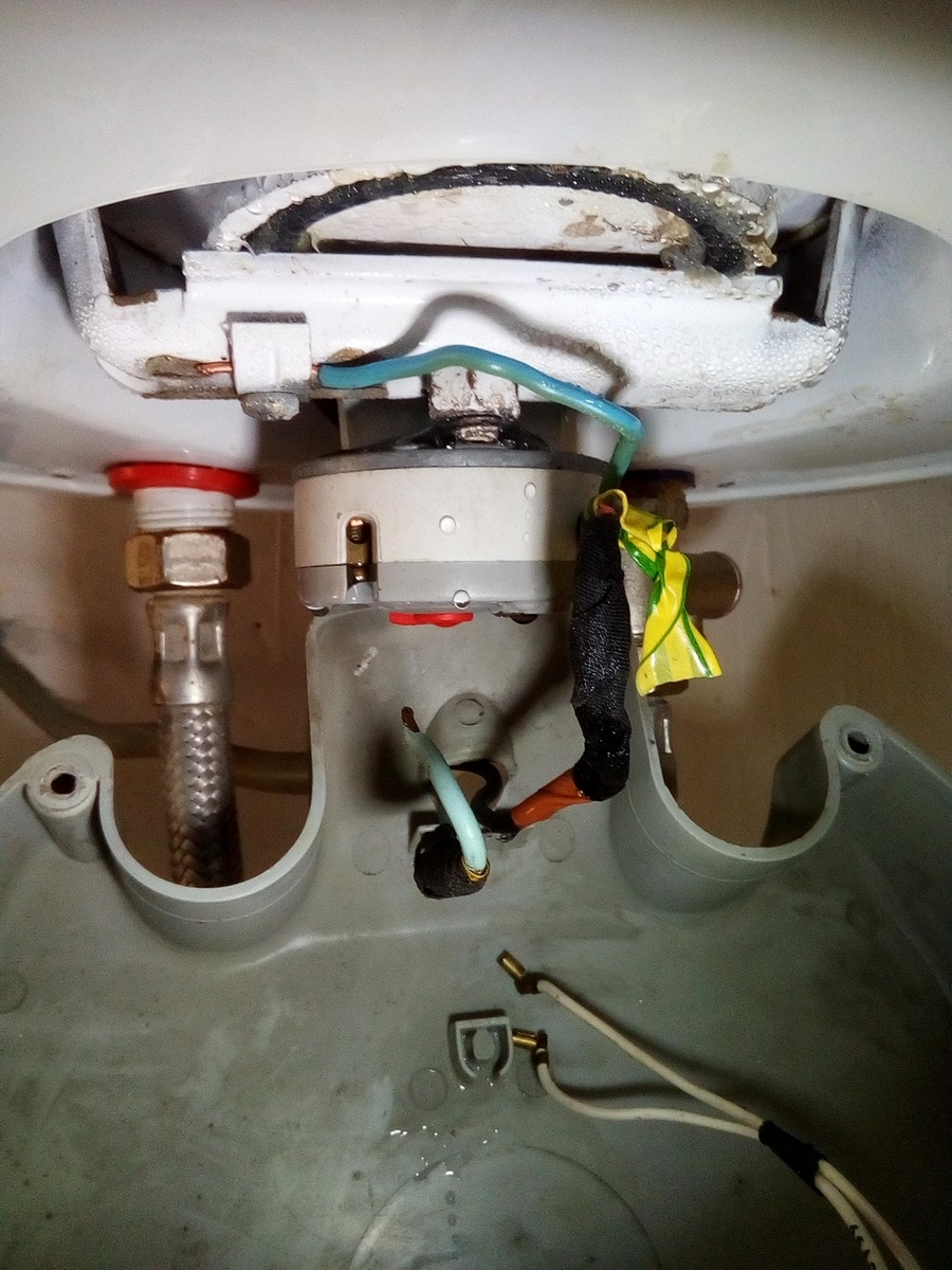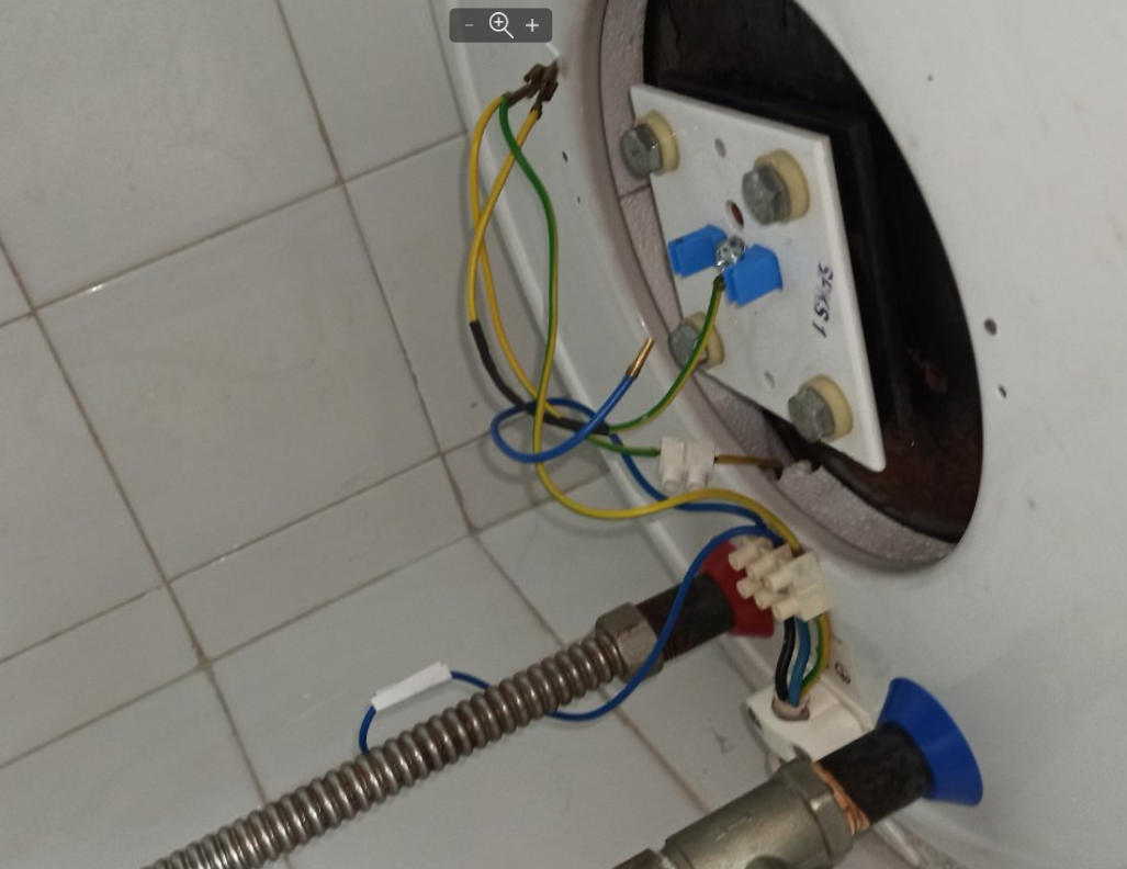 Бојлер након интервенције пензионера јесте угрејао воду, радни термостат је искључио струју уредно, а ја одврнуо осигурач на табли, за сваки случај пре купања јер не знам да ли је пензионер накачио фазу или нулу на грејач. Јесте закачио плаву жицу, али некада је била накачена браон, тј. црвена.