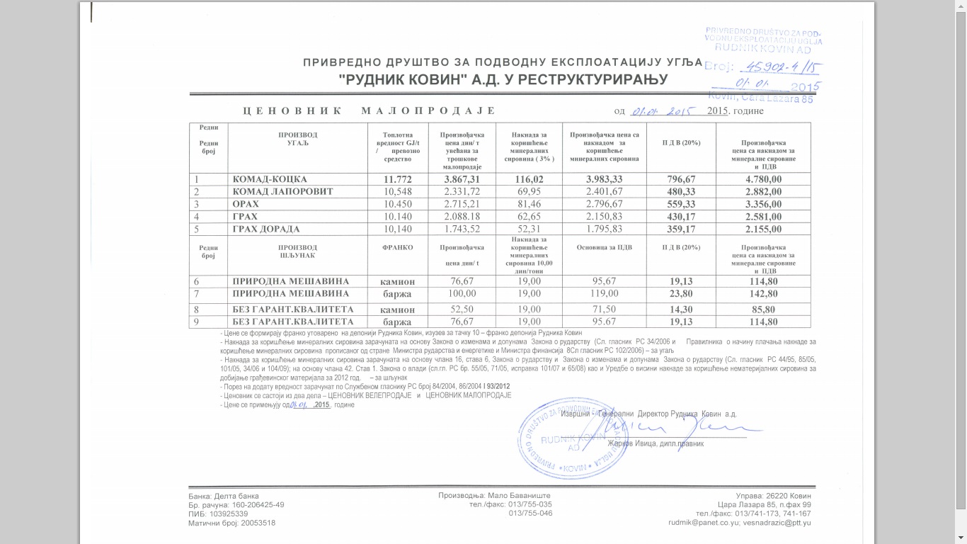 evo ja sam guglao, cene su za kamion direktno iz rudnika, slika u prilogu.