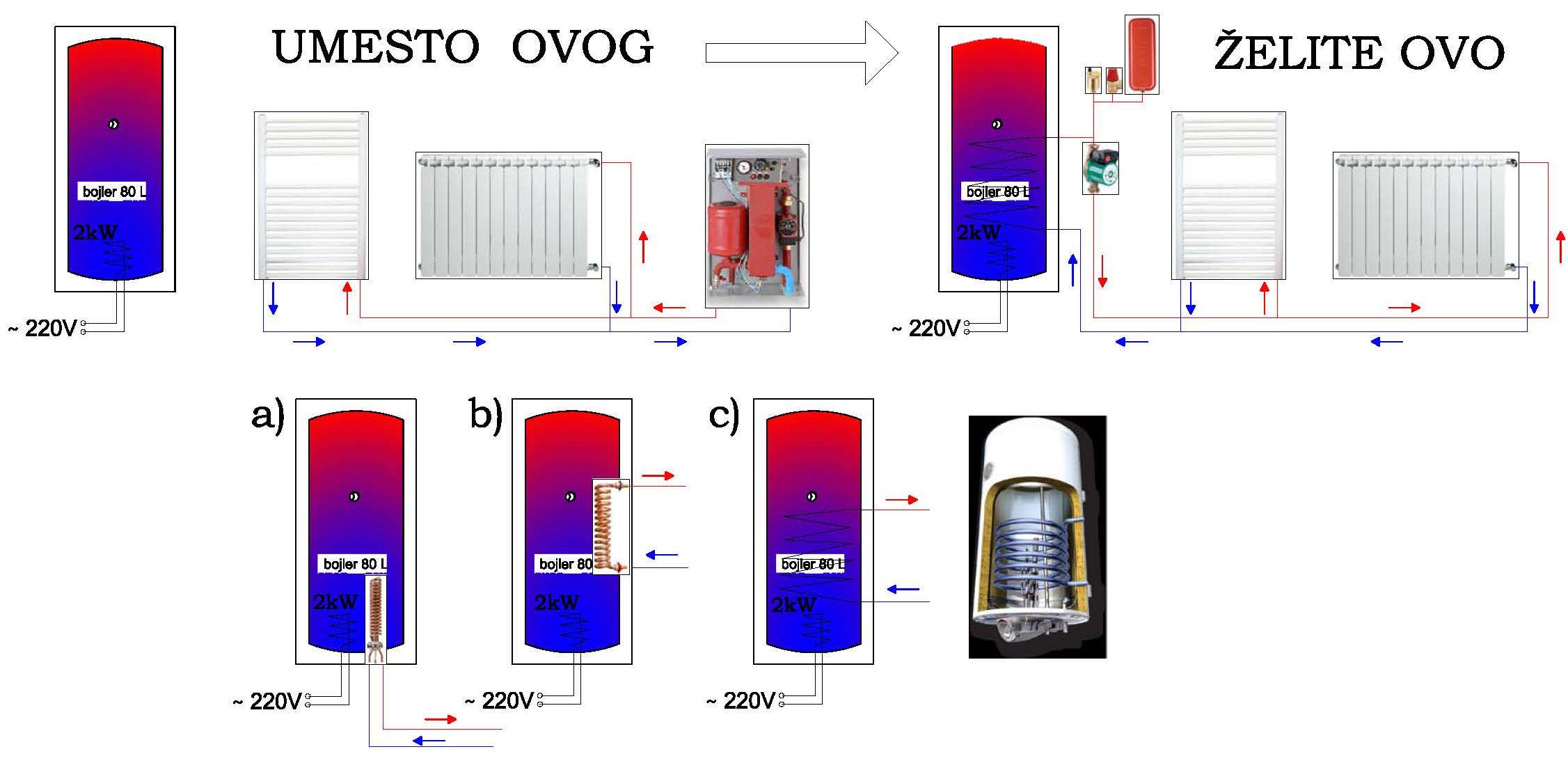 Uglavno u pitanju je instalacija bojlera sa izmenjivacem na vec postojecu mrezu centralnog grejanja..