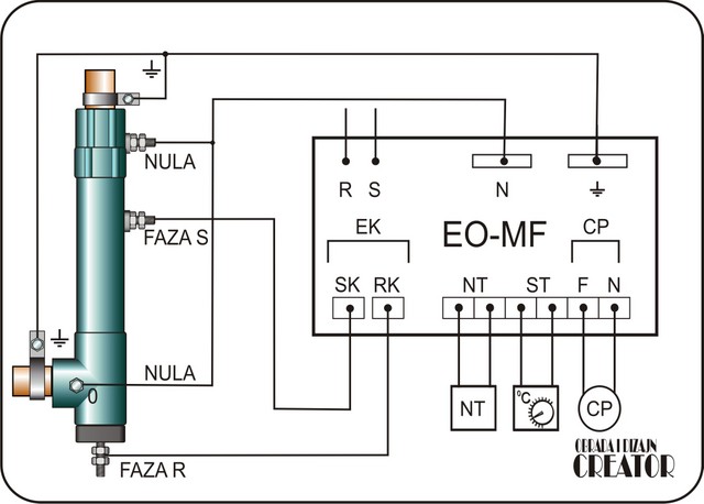 Potrošnja od 500w pa naviše,idealno za male prostore,ko je ugradio nije se pokajao,unutar kotla su dva kontakta od nehrđajućeg materijala,voda se zagrijava poput onog kuhala što ga je neko već spomenuo.Može se iskoristiti za dopunsko grijanje ili po potrebi dodavanjem ovakvih grijača dva ili više povećeva se učinak,evo i par šema priključenja a najvažnije je da uzemljenje mora biti prvoklasno