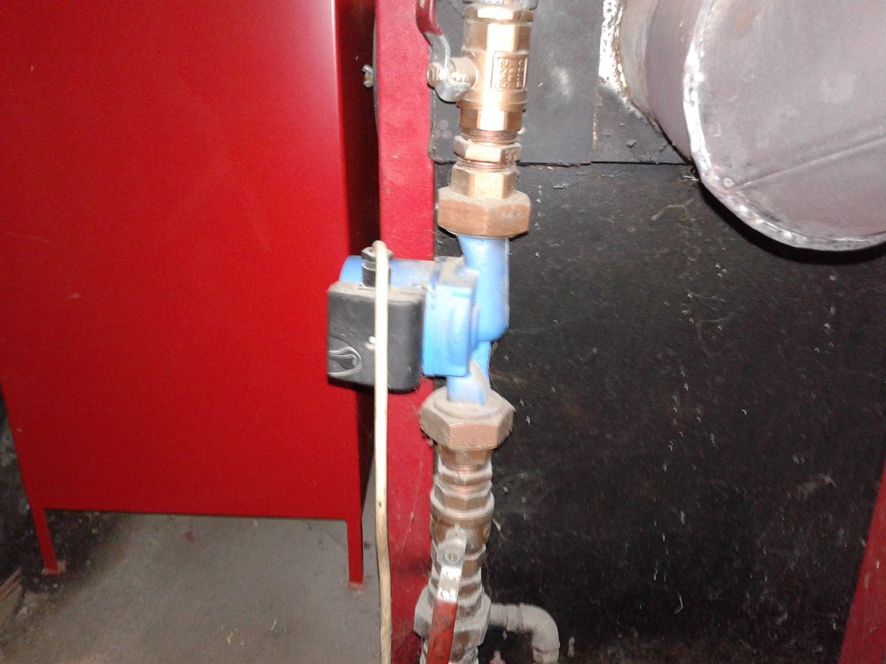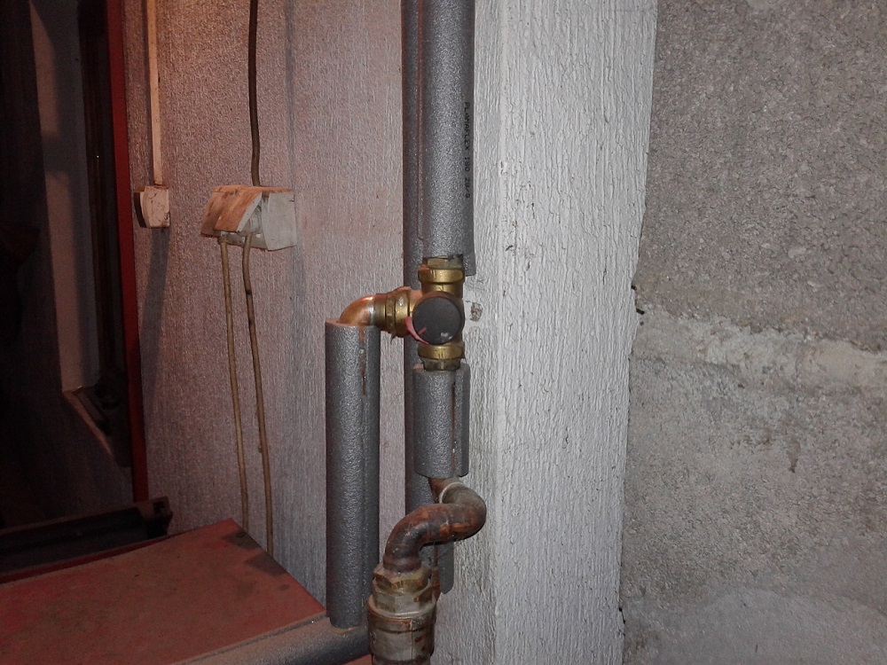 pumpa se nalazi blizu kotla na povratnom vodu a iznad je trokraki ventil