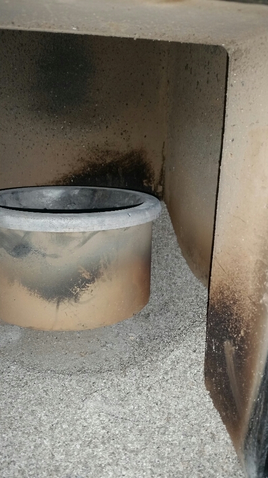 Rekao bi da je to zbog toga što tamo nema cirkulacije vazduha kao gore , meni je još više tako jer imam i obruč koji na gore usmerava plamen.