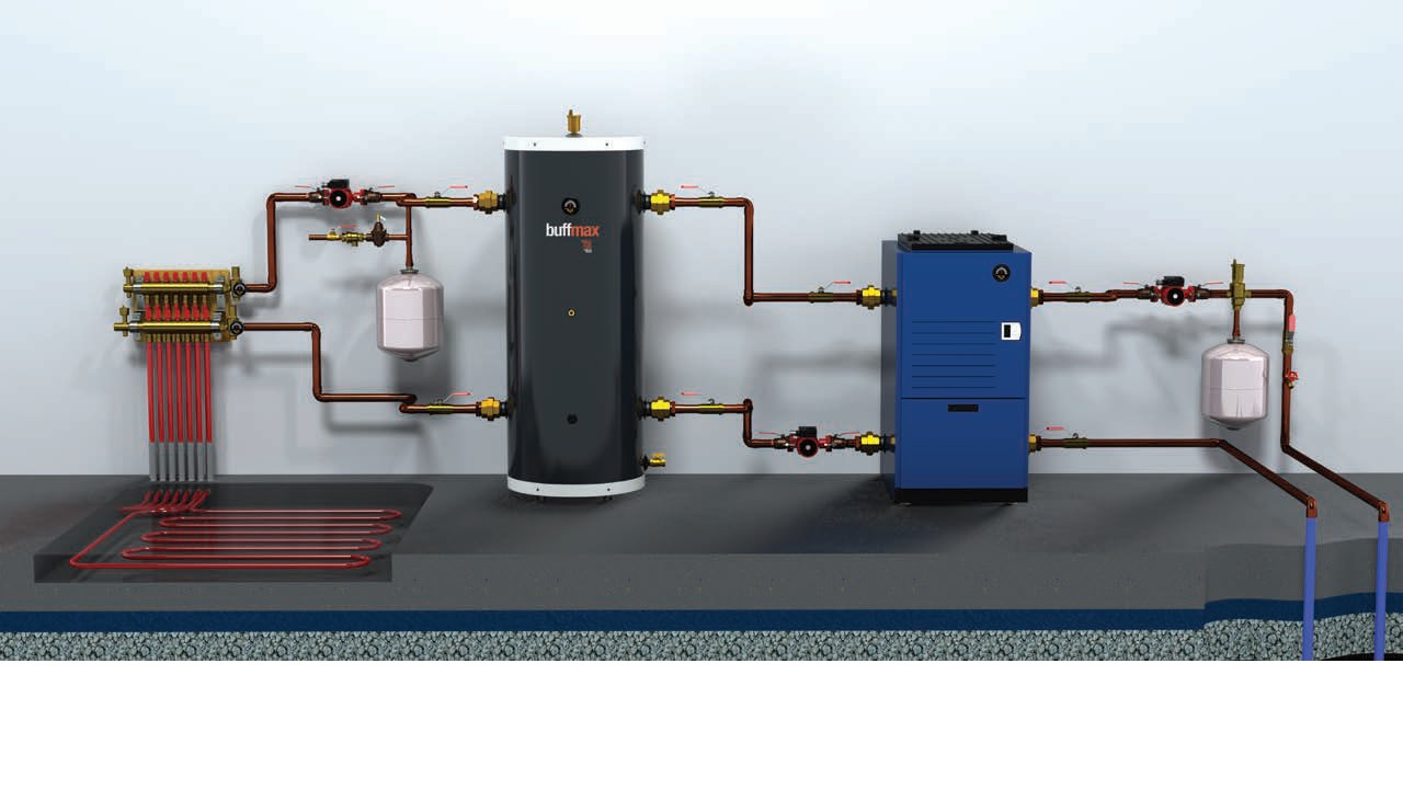 Imao sam moju temu. U kotlovskom krugu, kotao i kasnije toplotna pumpa, u krugu potrošača, tri grupe. Umesto hidraulične skretnice, bafer.