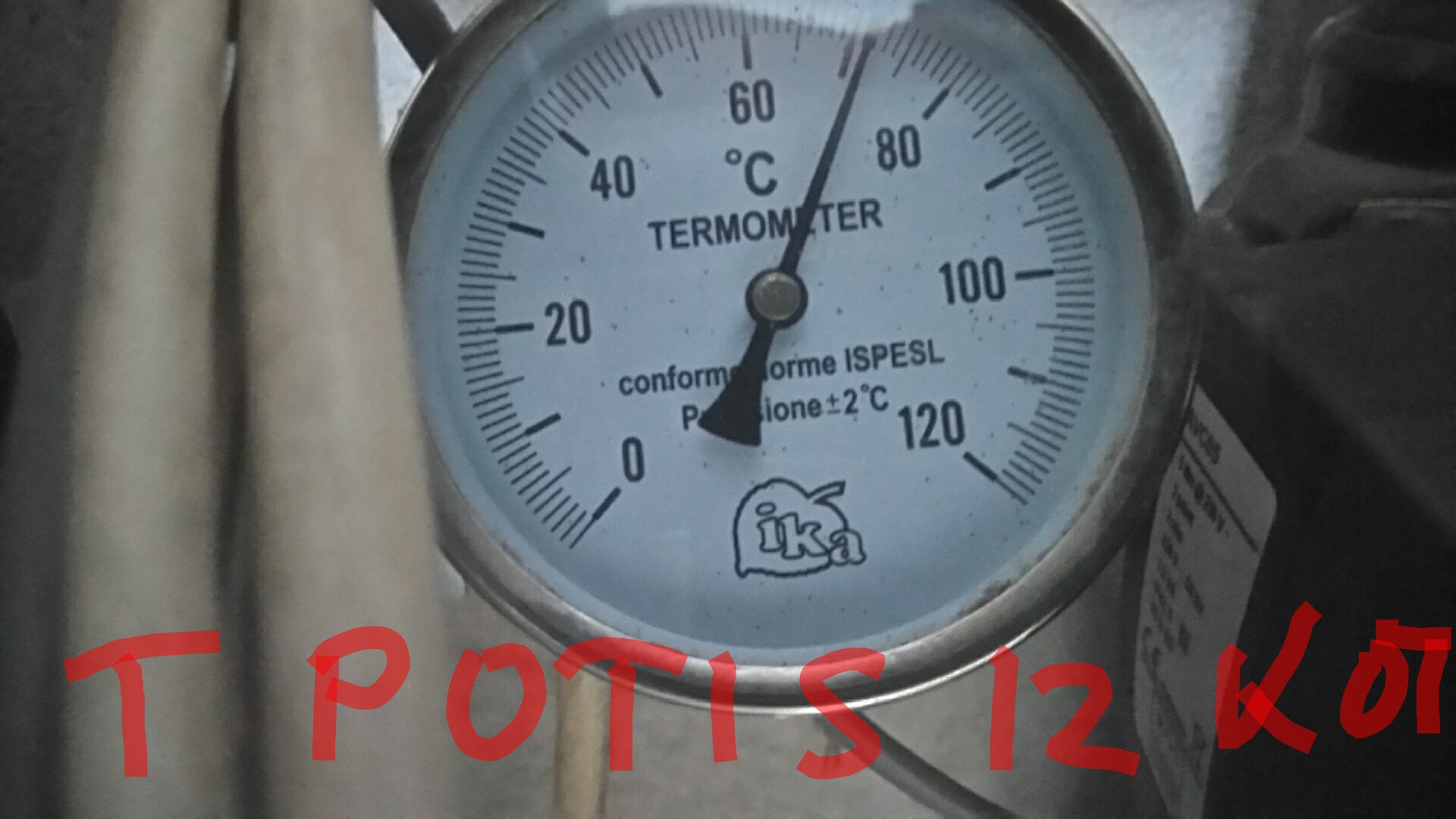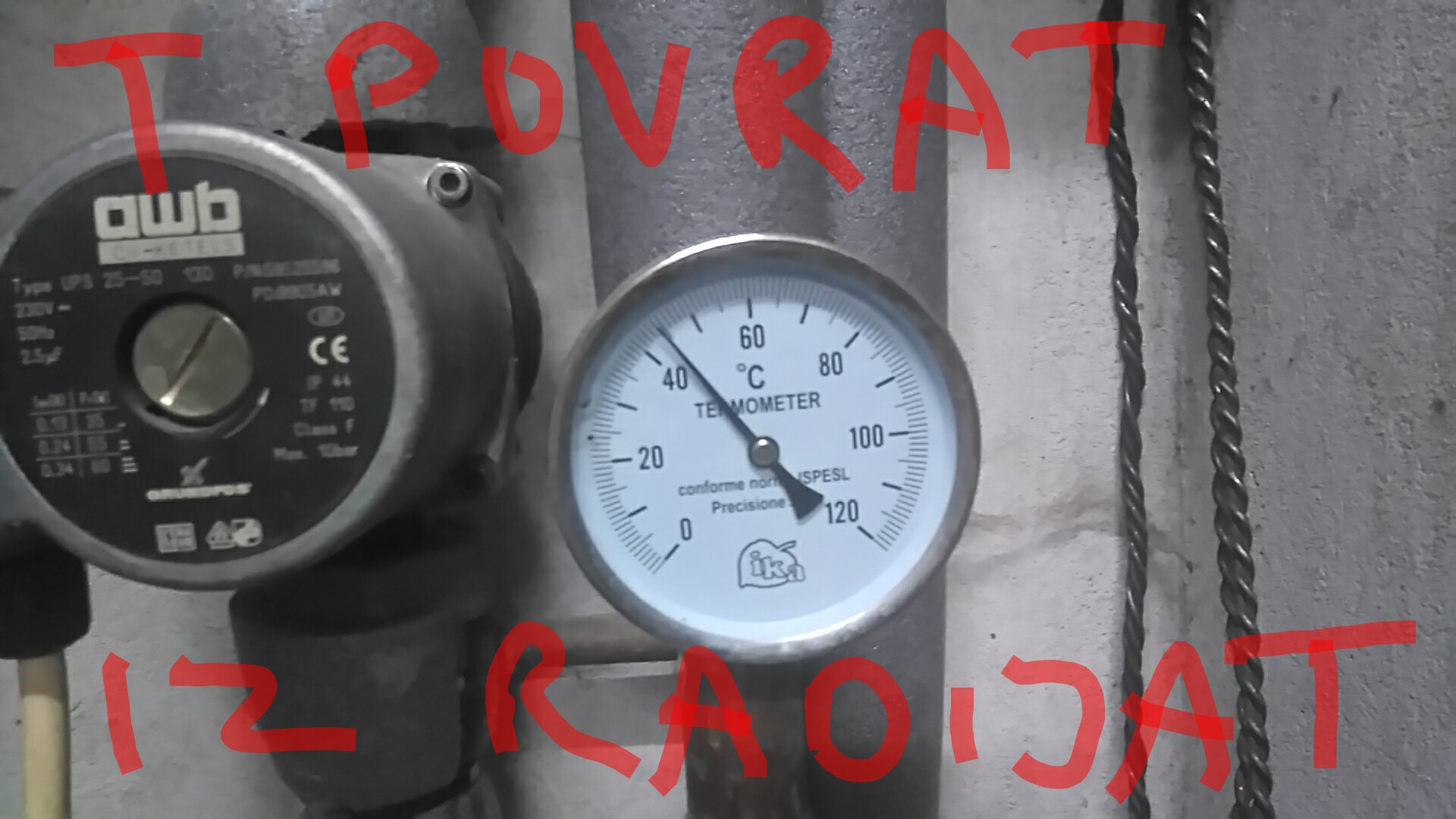 Posto nisam mogao da nadjem T komad od 1" koji na ledjima ima navoj 1/2", uzeo sam takav slican, ali se vari cev u njega od 1/2". Cev sam stavio par cm, pa koleno 1/2" sa navojem i u njega merni instrument.