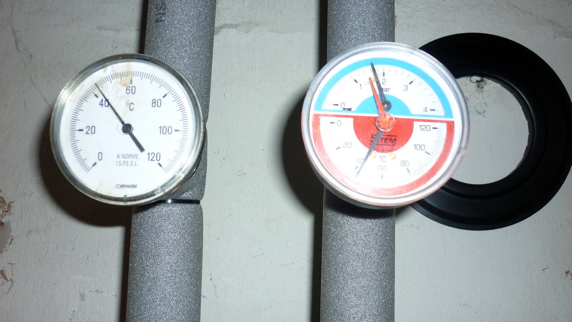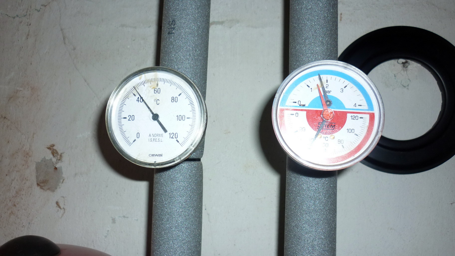 Nešto tu ne štima, temperatura na polazu nikako ne može da bude manja od temperature na povratu, jedino ako termometri lažu.