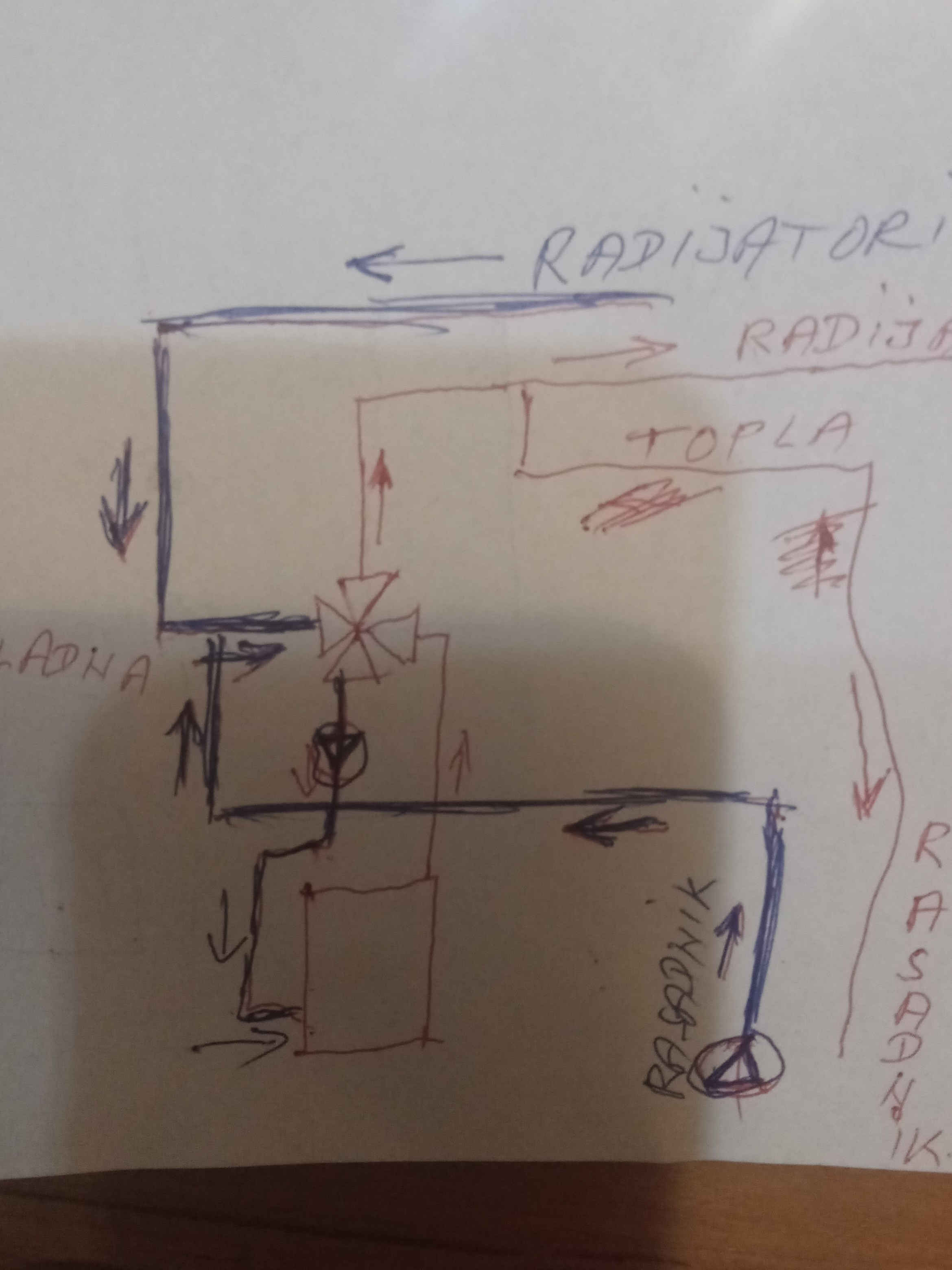 Posle spajanja novog kotla i dodavanje mešnog ventila 5/4 dobio sam takvu situaciju da nemogu da pošaljem u radijatore manje od 60 stepeni jer kad dalje prigušim mešni gubim cirkulaciju u daljim radijatorima a dva potopljena radijatora postaju hladni. Pumpa je ostala na istom mjestu na hladnom vodu ispod mešnog. Dali može neko stručniji od mene da mi kaže gdje je problem. Možda problem bio riješen da je pumpa na toplom vodu iznad mešnog ali nisam siguran.