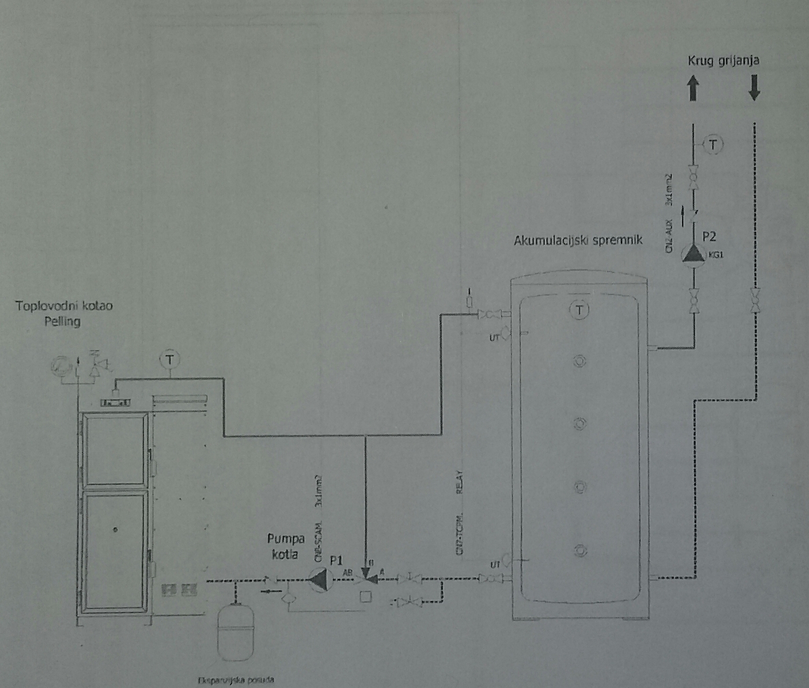 Ovo je šema sa upustva od kotla, čini mi se da ovdje fali regulacija temperature prema radijatorima