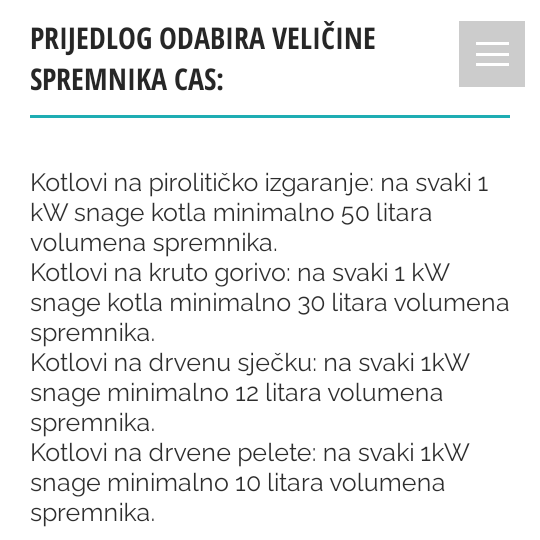 3 kw mi treba ako grijem samo 40m2 pomoćne stambene zgrade sa podnim grijanjem. Ako grijem samo kuću tu mi treba od 4-5 do 12 kw ako grijem samo rasadnik i tu je max do 10 kw. A sve zajedno do 25 kw.