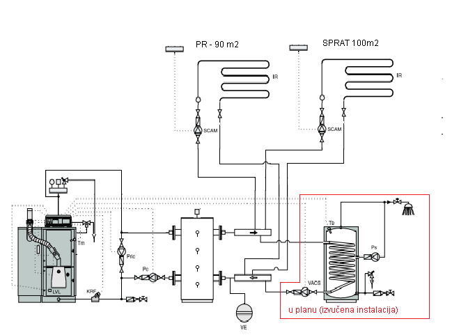 Postavljam šemu moje kotlarnice, instalirana je pre 9 godina. U planu je nadogradnja (bojler tople sanitarne vode).