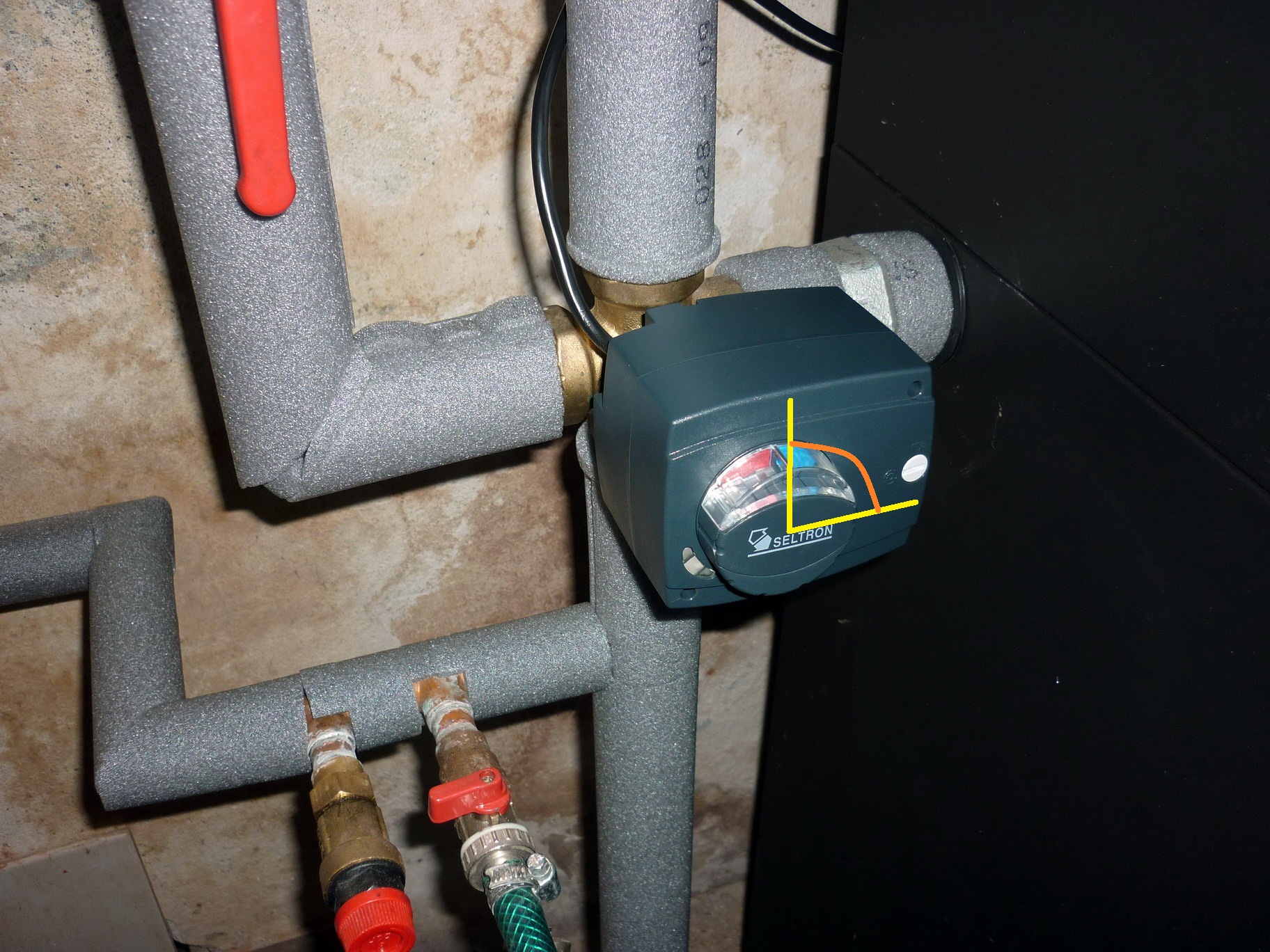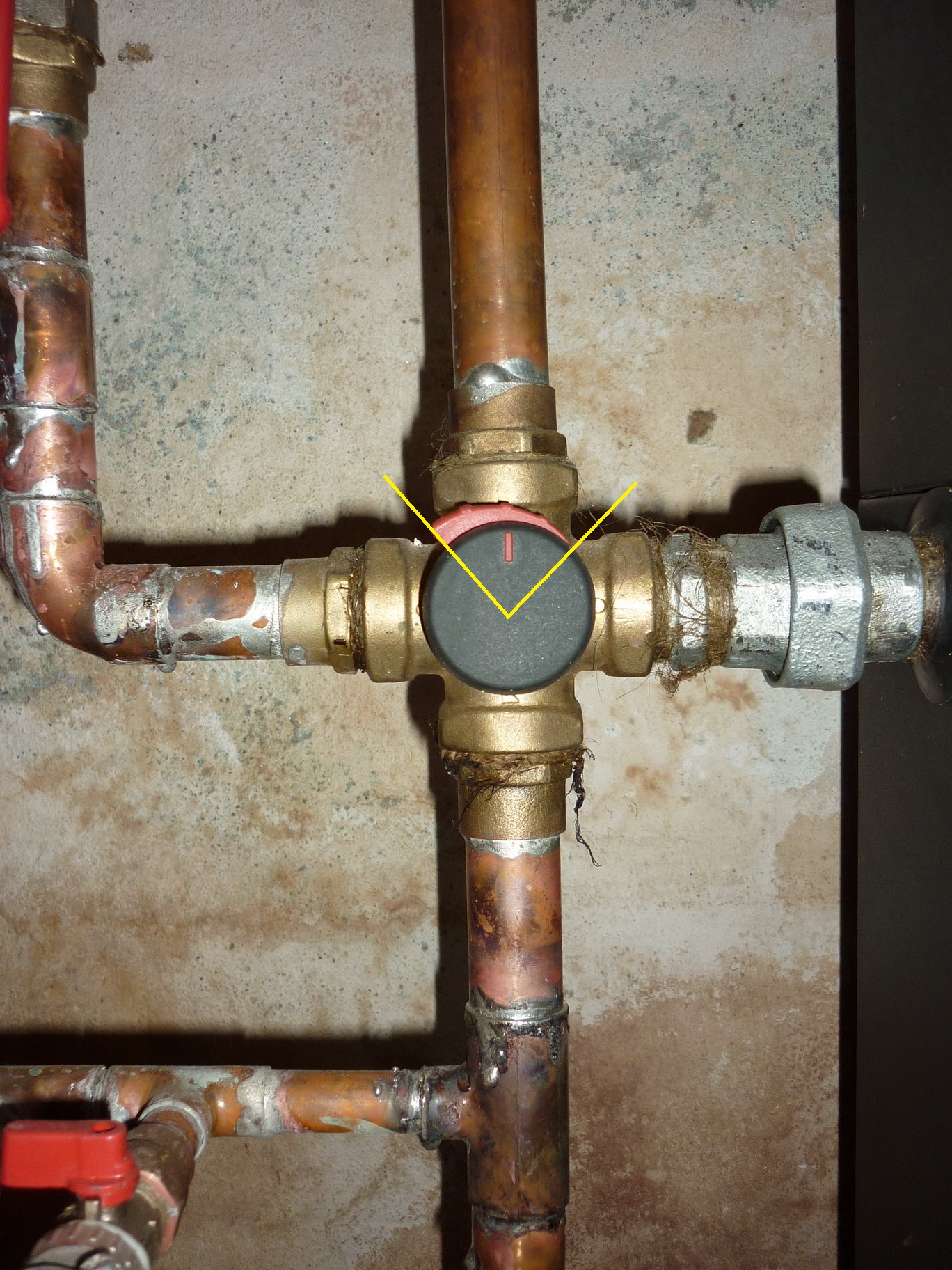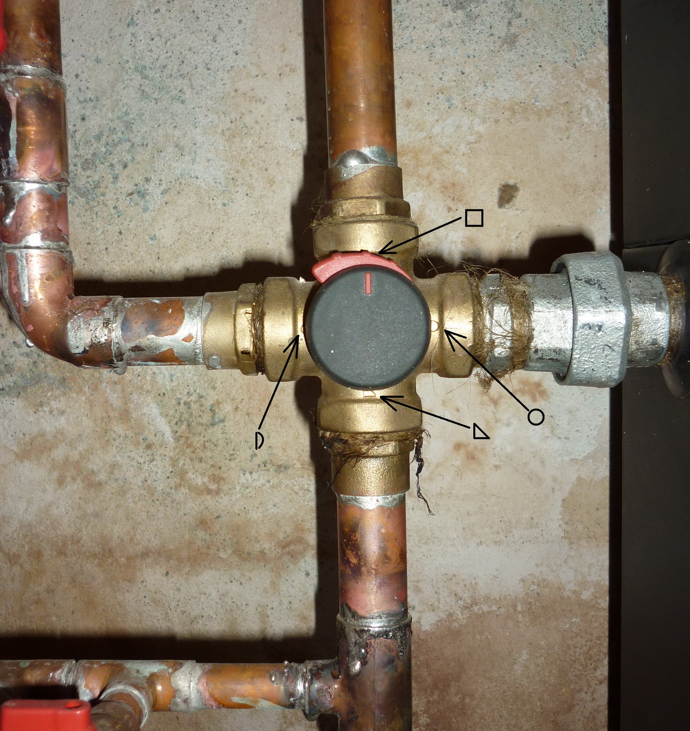 Код мене је меш. вентил постављен овако као на слици (обратите пажњу на знакове коцка, круг...),