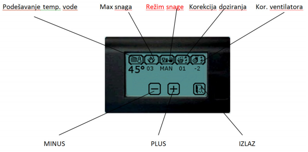 Imas korekciju doziranja i korekciju ventilatora...znaci ili smanjujes/povecavas snagu kotla ili brzinu ventilatora. Ta opcija se nalazi tamo gdje mijenjas temperaturu kotla, pa zadnje dvije ikonice (ako se ne varam).