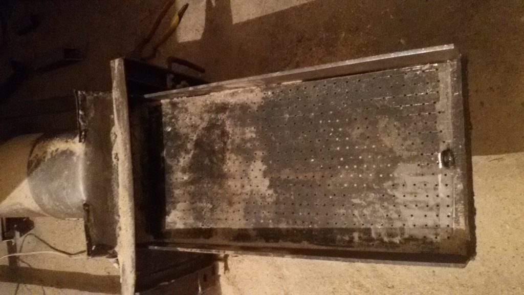 zašto nisi napravo rupu jedno 4 cm visine da se vazduh ne muči dok ulazi ali da te pitam još nešto, da li može ventilator da digne piljevinu, koja ne gori, sa ploče kad ga uključiš i to ne samo na početku, treba da ima kapacitet da osetiš jako stujanje vazduha celom dužinom i širinom ploče, a uz to moraš da imaš i štelovanje količine ubačenog vazduha jer nije svejedno koja količina vazduha ulazi ispod ploče. evo ti primer, kad mi se ploča napuni pepelom a ne otvara mi se pustim vazduh na max i sve odleti sa nje, posle desetak sec vratim i sve ok
