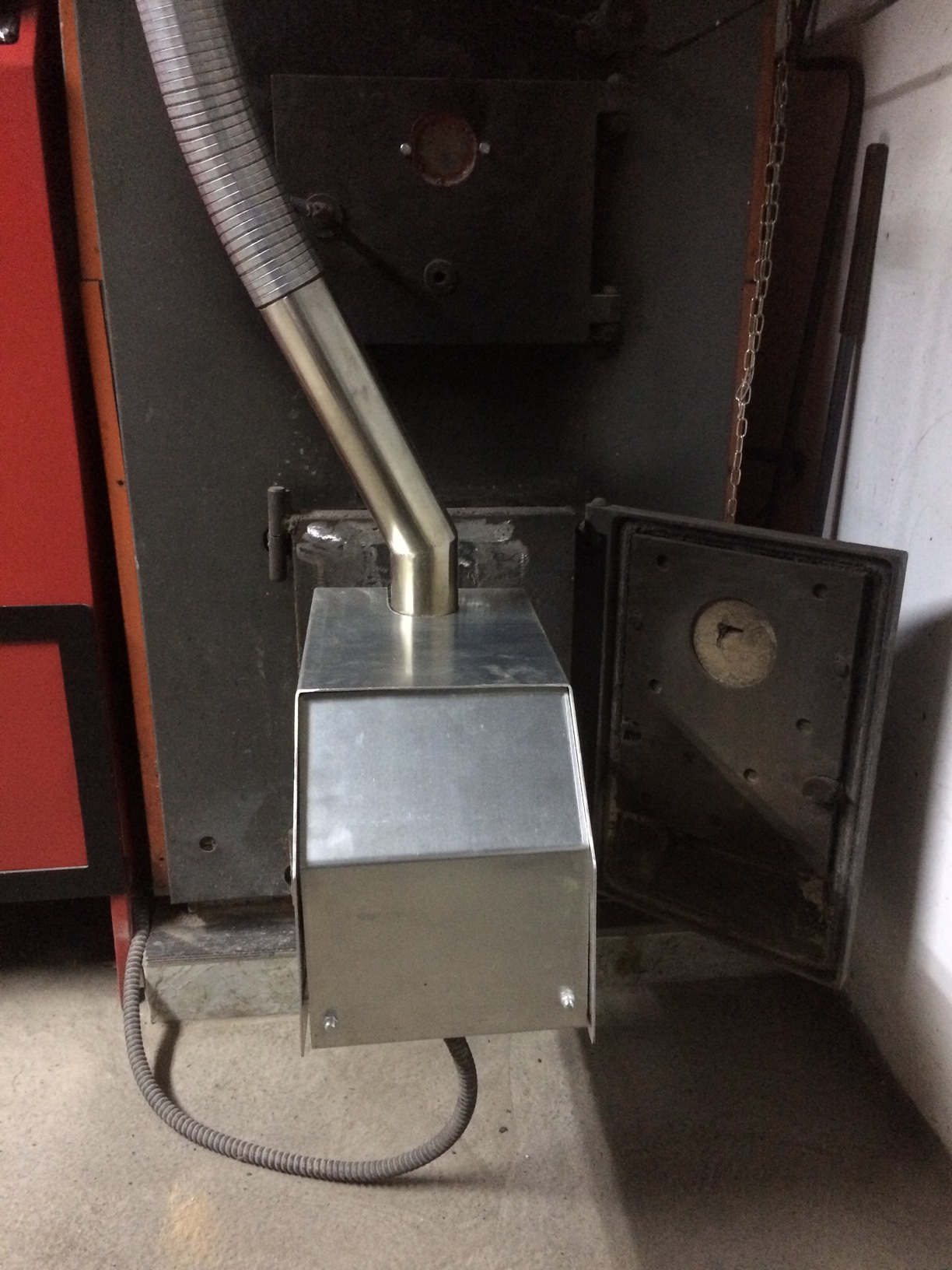 slike baš i nisu jasne, na prvi pogled sve je ok, piljvina stiže na ploču ali ne vidim gde ventilator uduvava vazduh, slikaj mi to mesto, ne previše izblizine da bih mogao da shvatim kuda vazduh stiže ispod ploče za sagorevanje