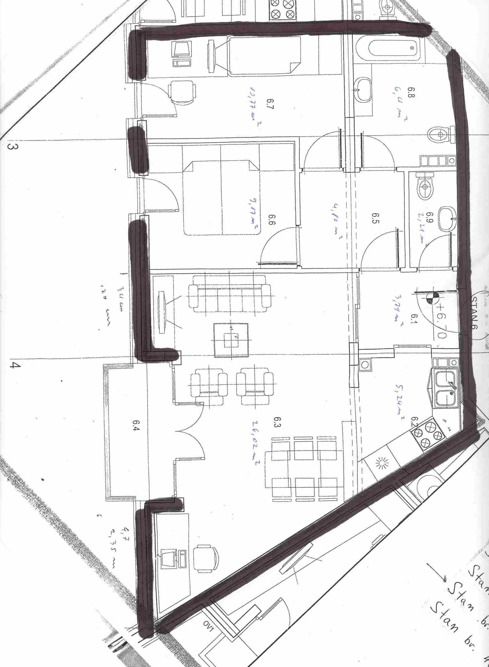 U prilogu su sličice sa tlocrtom stana (sa kvadraturom prostorija) i izgledom radijatora.