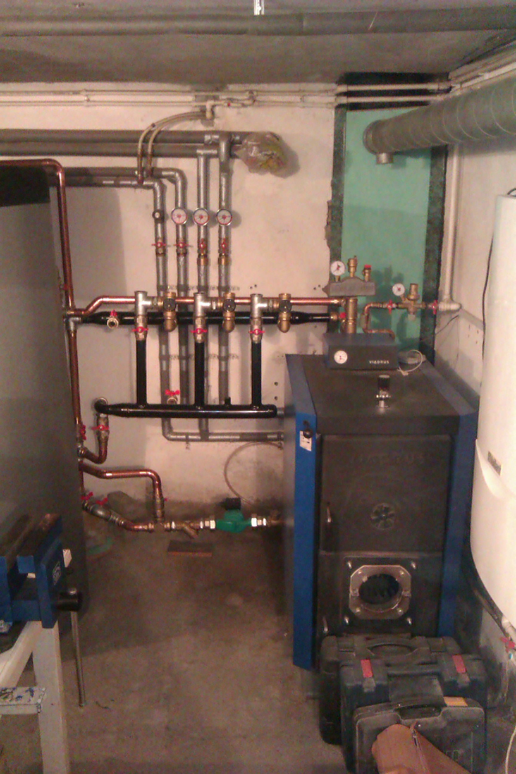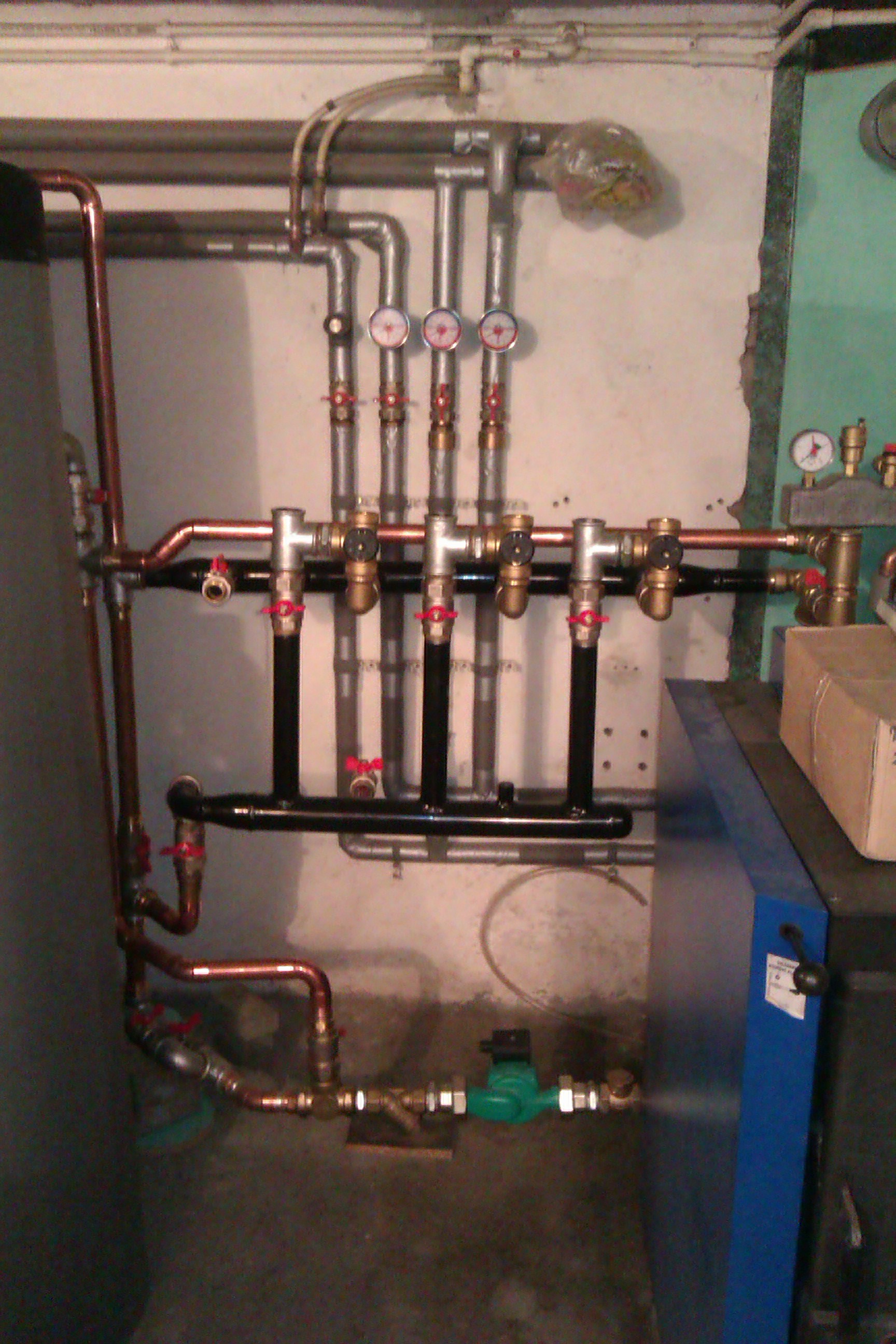 Ma sumnjam da je cena jer sam viđao to i u "bogatim" kotlarnicama. Ne mogu da nađem baš odgovarajuću sliku. Cini mi se da je i na ovoj u produžetku razdelnik i sabirnik spojen u U cev.