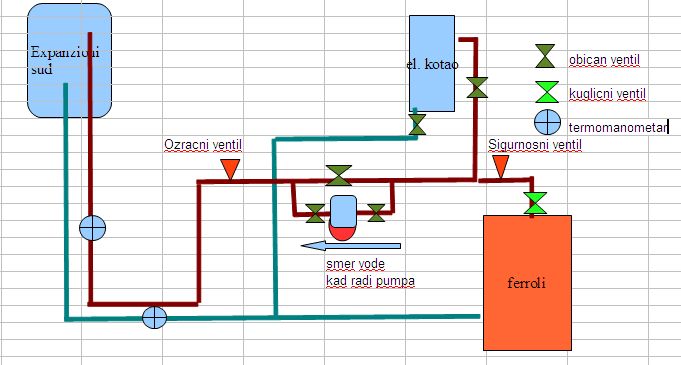 Poseku "majstori sve cevke i struju po kotlarnici i krene montaza, Naravno, glavni otisao posle 15 minuta i ostavio pomocnika. Ovaj jadnik ceo dan vario, i kad je pao mrak, on bi da ide, jer nema tamo svetla (posekli). Ja udjem u kotlarnicu i imam sta da vidim: Ceo dan se muvao oko pumpe i bajpasa (to su iskoristili staru instalaciju, znaci samo trebalo da to zavari na nastavak cevi koja ide u kotao), a on zavario jos jednu dotatnu cev, pa napravio tako da ide (odozdo na gore gledano): cev sa pumpom i dva ventila, bajpas sa ventilom i ova cev koja nicemu ne sluzi. Jedva ga ubedih da to ne valja, i posle pola sata lupi se on po celu i shvati: jooooj, ja pogresio. Jedva ga ubedih da to odmah ispravi, a ne da ceka sutra.