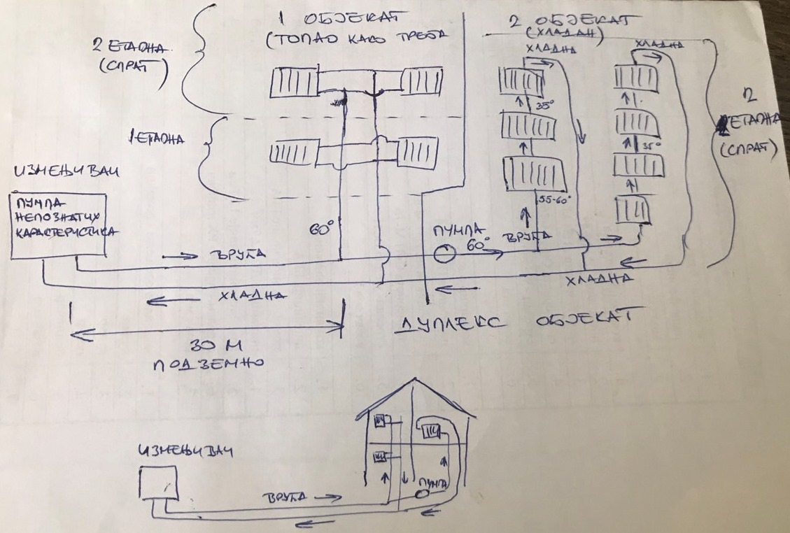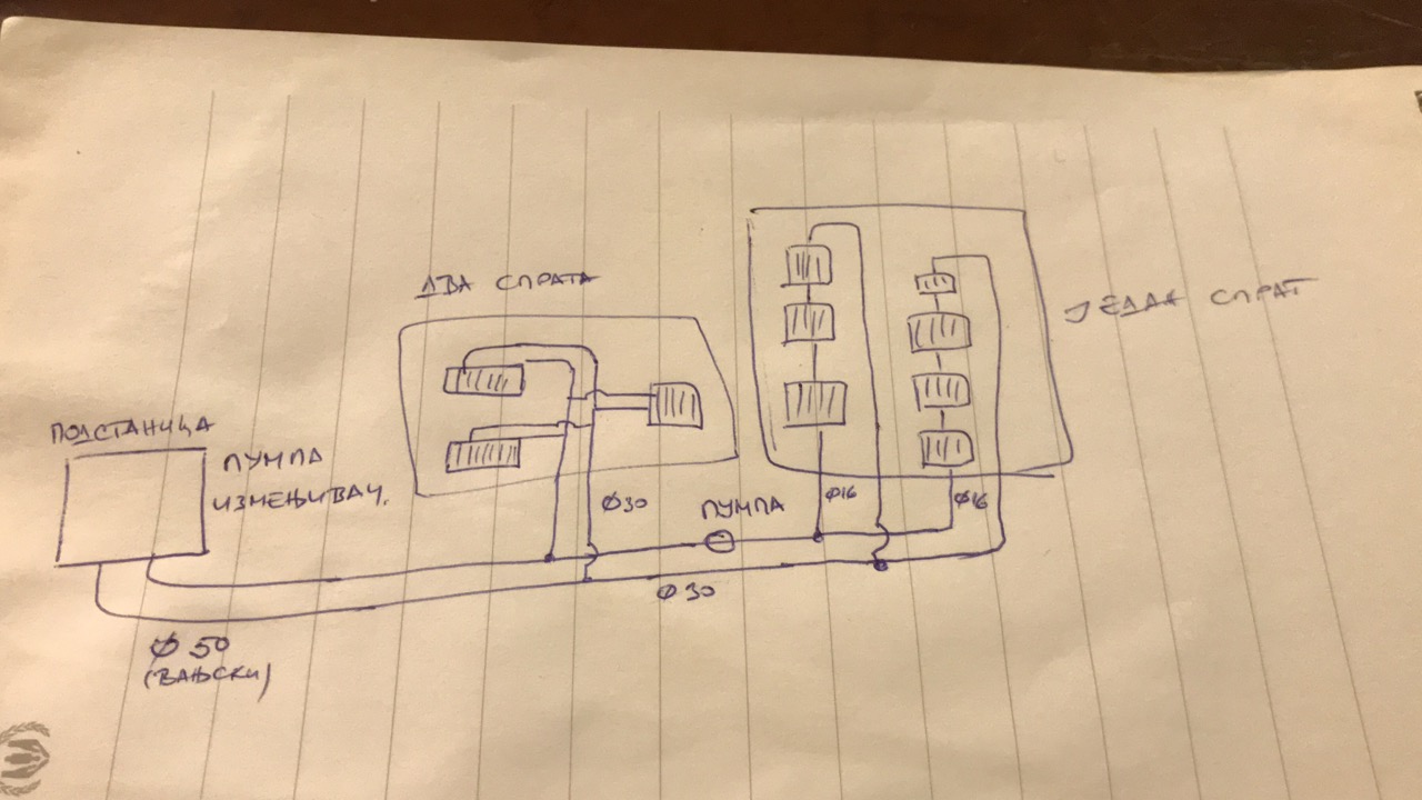 Pozdrav drugari, kod tasta u kuci je jednocevni sistem grejanja razveden po kuci, i dok je sistem bio prikacen na kotao u podrumu sve je radilo besprekorno, medjutim dolaskom toplovoda kuca je prabacena na grejanje iz toplovoda ali tako da je izmenjivac toplote kod komsije 30tak metara dalje od kuce. Odatle cevi zemljom idu do podruma gde je pumpa (pumpa je mala cini mi se 75w ili tako nesto, koja je koriscena za sistem dok je kotao bio u sistemu. Nema oznake na pumpi, pa predpostavljam po velicini da je jedna od manjih, jer se kotlom grejalo oko 80 m2 sa 5 radijatora i radila je posao. Radijatori su tako rasporedjeni da iz podruma idu dvije magistrale i da su prvi radijatori manji a oni kasniji veci . Radijatori su panelni sa mesacima ili kako se vec zove odozdo na sredini radijatora. cevi kojima se dovodi voda su cini mi se 20tak mm promera, bakarne oblozene cevi. Problem je sada sto je grejanje jako slabo, radijatori su mlaki i sumnjam da postizu temeperaturu i 40 stepeni.