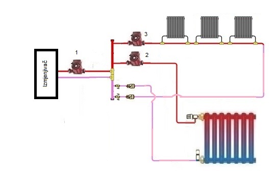 Da li bi se sta dobilo ubacivanjem jace pumpe ili problem probati resiti zamenom postojeceg sistema sa jednocevnog na dvocevni (ispod svakog radijatora ide cev povratnog voda od zadnjeg radijatora, tako je razvodjeno)