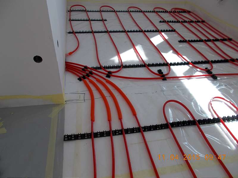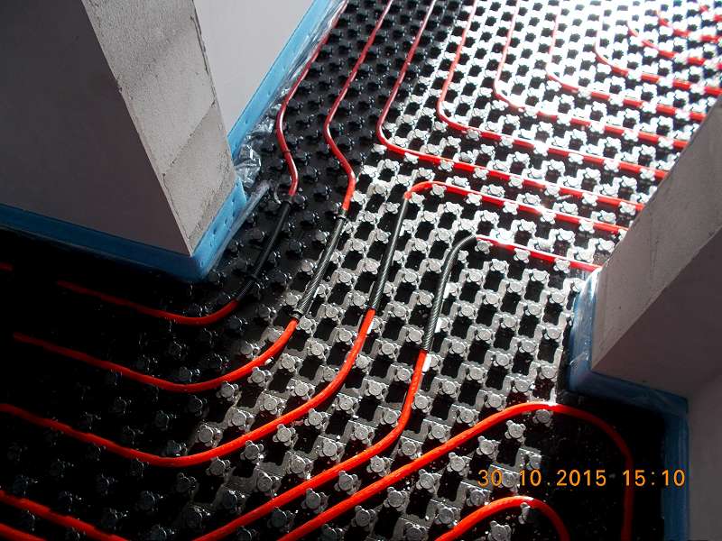 Sto se tice cevi, za podno moze i da se koristi pex a, proverenih proizvodjaca. Sto se tice rastera, na 15cm sa barijerom od 80-90cm i rasterom od 7-8cm ka svim spoljnim zidovima i vecim staklenim povrsinama. Krugovi do 90m,. Prostorije vece od 30m2 podeliti sa diletacionom fugom. Rubne trake pod obavezno do svih zidova. Ako seu povrsine vece, i planira se vece opterecenje, namestaj i slicno, obavezno raditi diletacione elemente koji dovoljavaju kosuljici da se "pomera" napred nazad, a da ne postoji mogucnost da se smakne