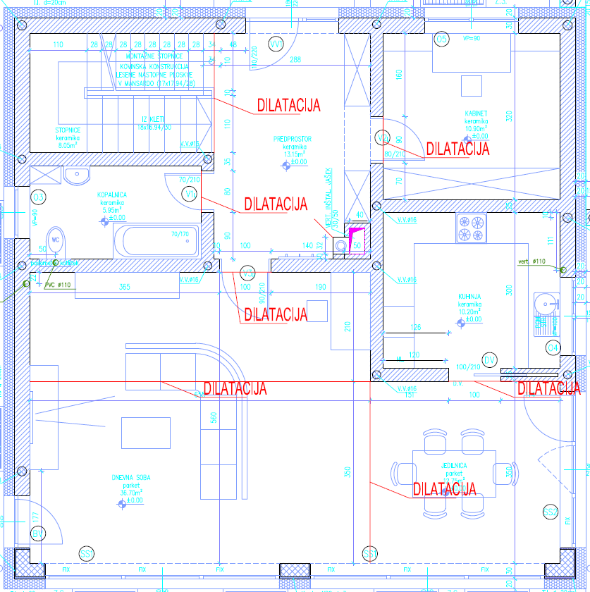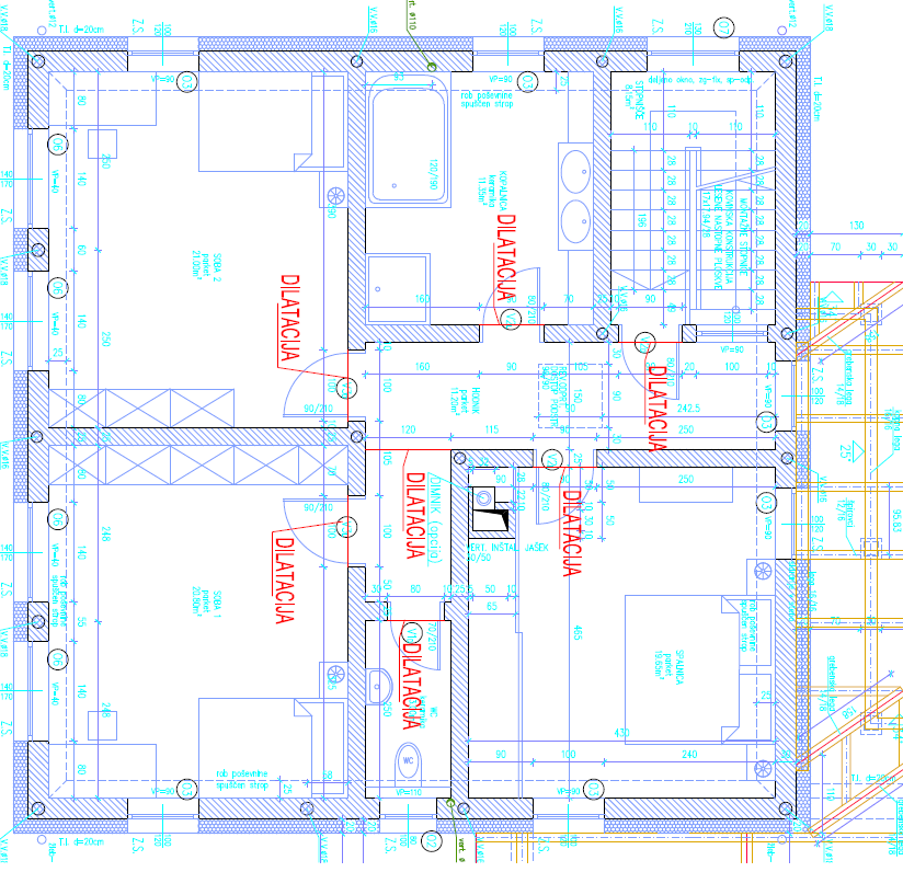 ako priljepiš tvoj tloris etaže, bi se moglo konkretnije popričat o mijestima dilatacije. Zbog razgibanog tlorisa hiše, se događa, da se dilatacije izrade in na manjih dimenzija nego 30m2.