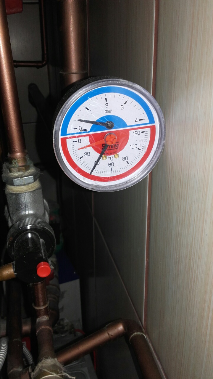 Uradio sam grijanje pomocu sporeta. Na ovim uredjajima stopje ovakve vrijednosti za pritisak *kao na slici) Da li su te vrijednosti u redu i sta da radim? Moze li neko da mi poslje skicu grejanja na sporet za jedan sprat. Nejasno mi je u vezi ekspanzione posude. Da li je ovo na slici u kupatilu regulator dotoka vode?