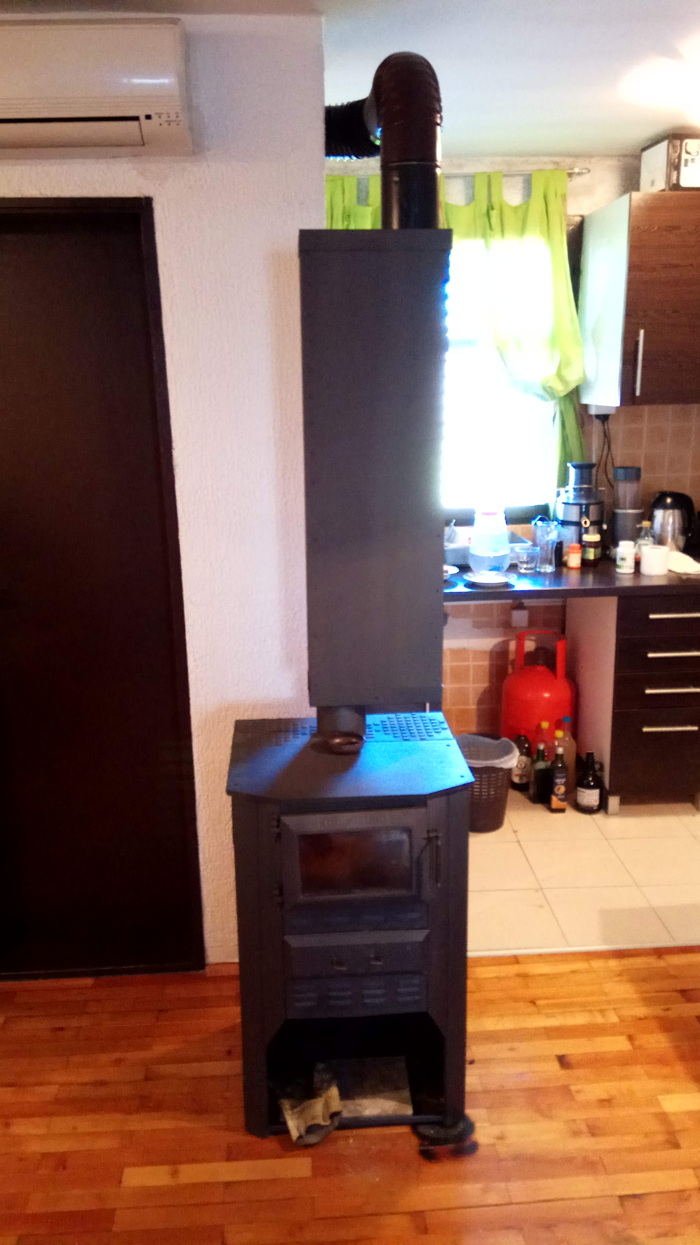 Nego, ako dozvolite, da se vratim na temu. Pokušao sam da od stare peći koju zovu "čarobna" napravim nešto bolje, slicno raketnoj, kao batch box rocket stove. Malo sam prepravio ložište i na nju stavio izmennivač toplote koji je slične konstrukcije kao raketna. Dobio sam dosta bolje grejanje i rad, ali ni blizu kao prava raketna. A problem je samo u visini, što ne greje nisko kao prava raketna. Sagorevanne nije dobro mada sam uveo sekundarni vazduh, ali može se još poboljsati sa tercijalnim vazduhom i promenom konstrukcije lozista. Opet bih naglasio da obratite paznju koliko je sve bitno i zasto je raketna toliko efikasnija od drugih,. Temperatura je max 22*C a sa raketnom brzo nabije 26*C, mada je sa raketnom toplo i sa 22*C a sa ovom nije, i ako ona zrači jako, ne mozeš da stojiš pored nje. Nece da ucita fotku, videcu kasnije da je okačim.