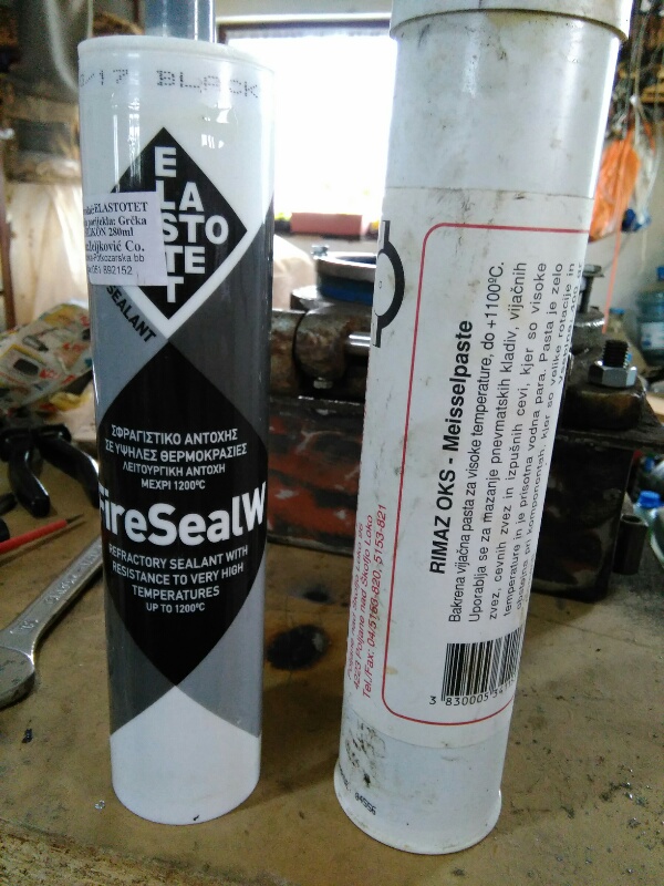 Skoro sve pozicije su gotove. Sledi priprema za probu na otvorenom a onda čekam otopljenje da gorionik ubacim u ložište. Sve šarafe obezbjeđujem bakarnom pastom do 1100°C a fiksne prelaze i dihtovanje ću odraditi silikonskim kitom do 1200°C