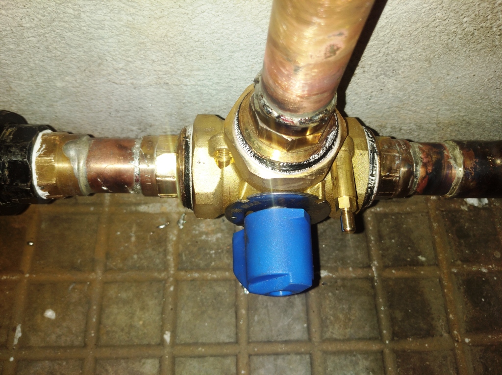 Veza kotla i AT je urađena sa termostatskim mjesnim ventilom Herz Templomix sa termostatom na 60 stepni, ventil je 1". Pumpa u kotlovskom krugu je 25-60 i odma na nju je navrnut Herz nepovratni ventil VP637.