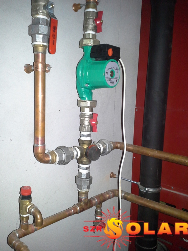 Radiće , nego čisto zbog onog "ne daj bože" nestane struja, tebi napakovano ogrevom pa kad otvoriš ventile da imaš prirodnu cirkulaciju voda ide kroz bajpas a ne ravno uvis , ništa strašno , al običaj (pravilo) je da bi tamo trebala pumpa. Bajdvej što su ti ventili svi zatvoreni ?