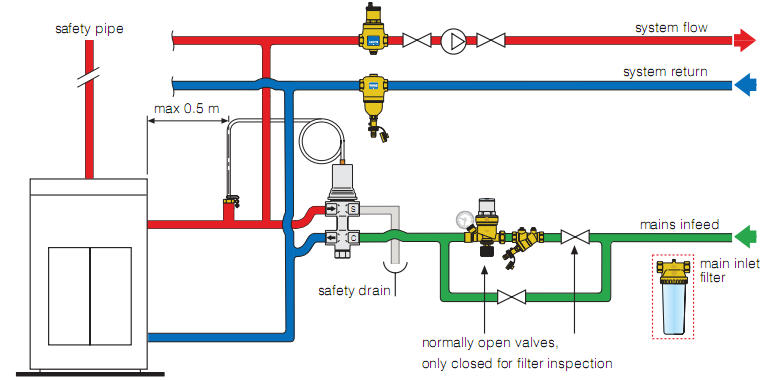 To su izvodi za otvoreni sistem. Posuda na tavanu. Ako nisi napunio sistem, a da jesi...tu bi izlazila voda. Tebi je potreban ventil TO sa automatskim dopunjavanjem.Npr Caleffi 544. Kosta lepo. Red velicine preko 100 evrica. Evo ti seme