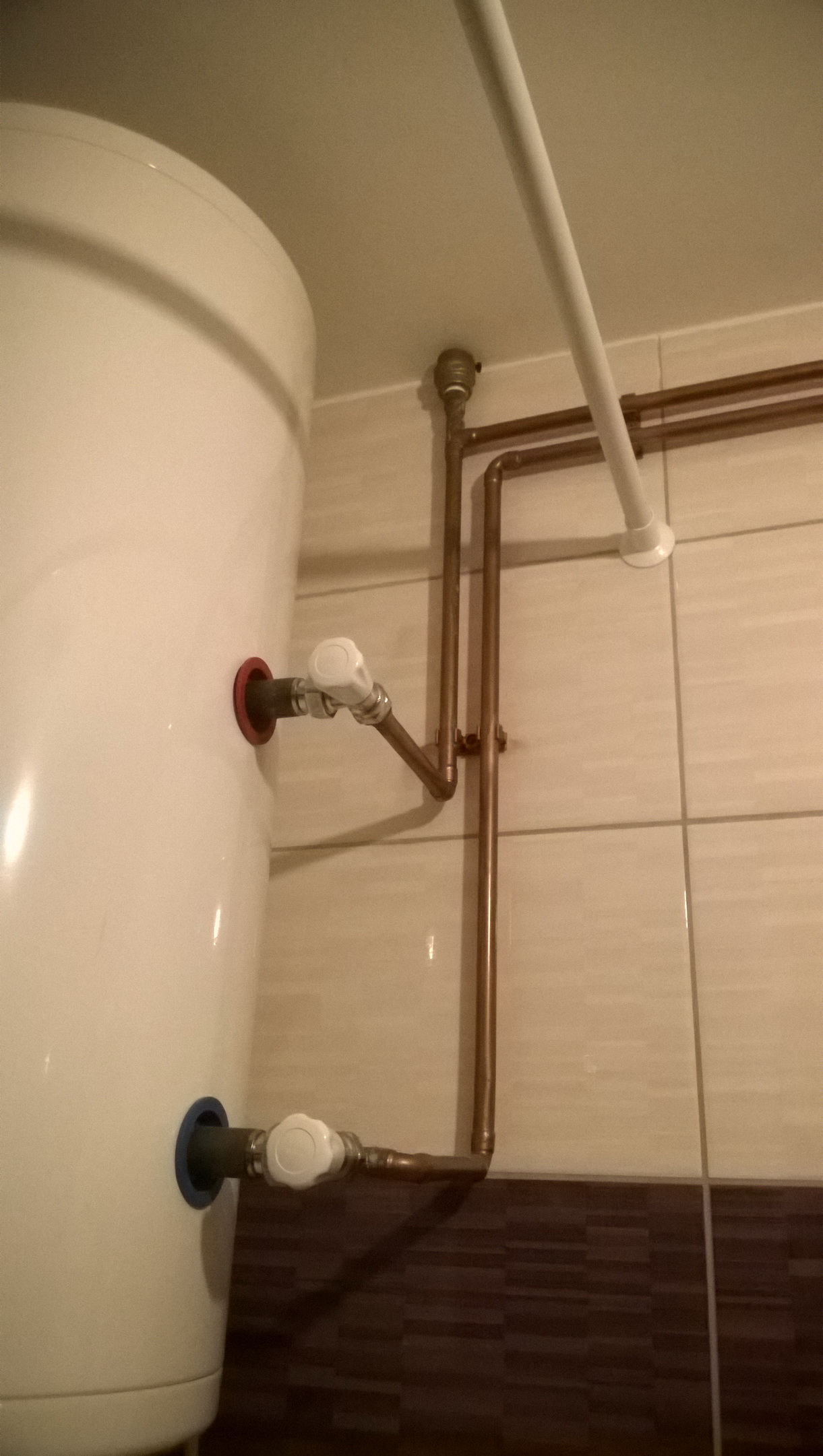 Ja imam jedan sigurnosni ventil na povratnom vodu spojen da bocom. Spojeni su na povratni vod posle pumpe ka radijatorima. Na slici skroz desno se vidi tanja cev od boce ka ventilu.