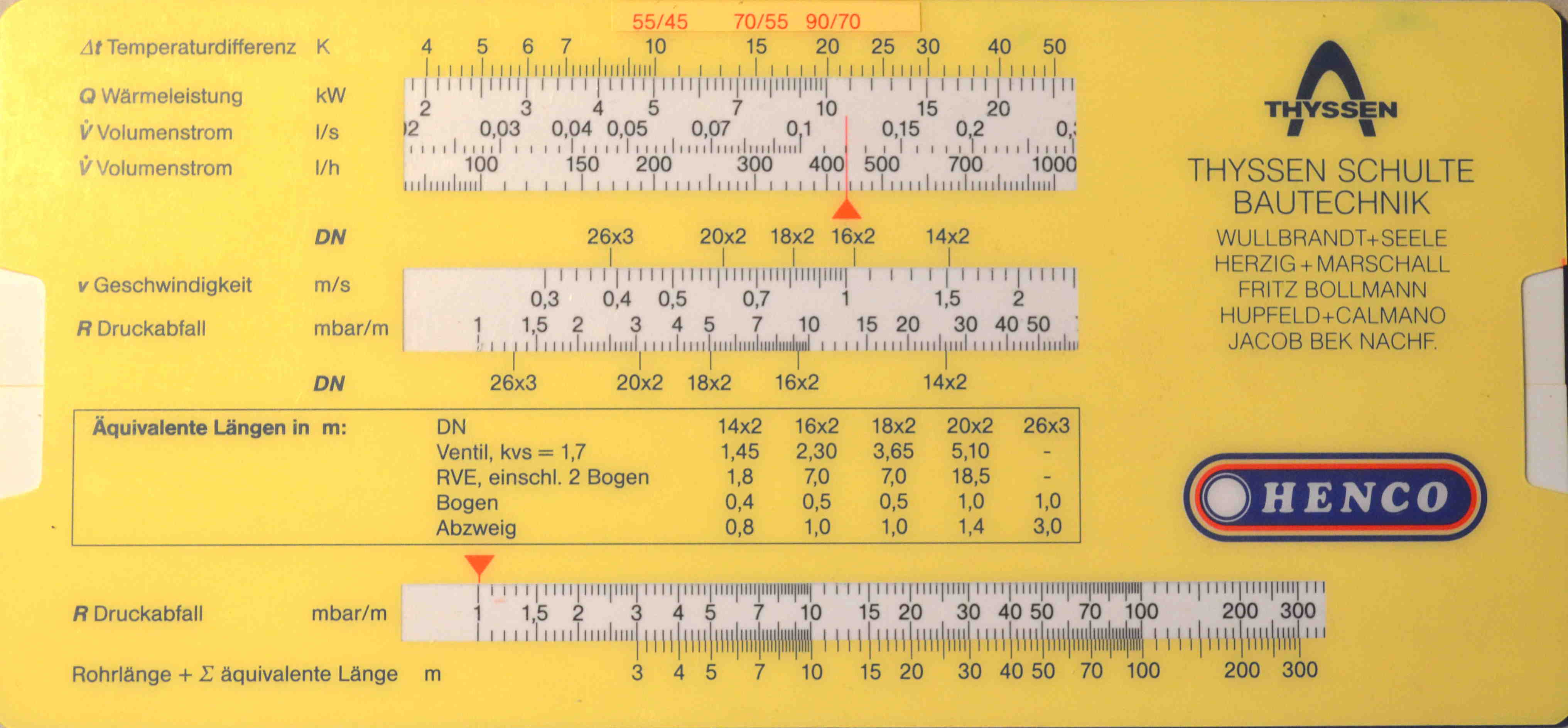 Predpostavljam da je to nesto slicno sto ja imam. Podesis koliki je delta T, precnik cevi i dobijes vrednost pada pritiska u mbar po duznom metru. Ujedno i kolika je instalisana snaga po jgrani cevne instalacije. Mogu da pitam oca, on verovatno zna sta je ovo. Iskreno, ja nisam koristio ni ovaj moj sto imam, dobio sam ga uz neke razdelnike za podno grejanje