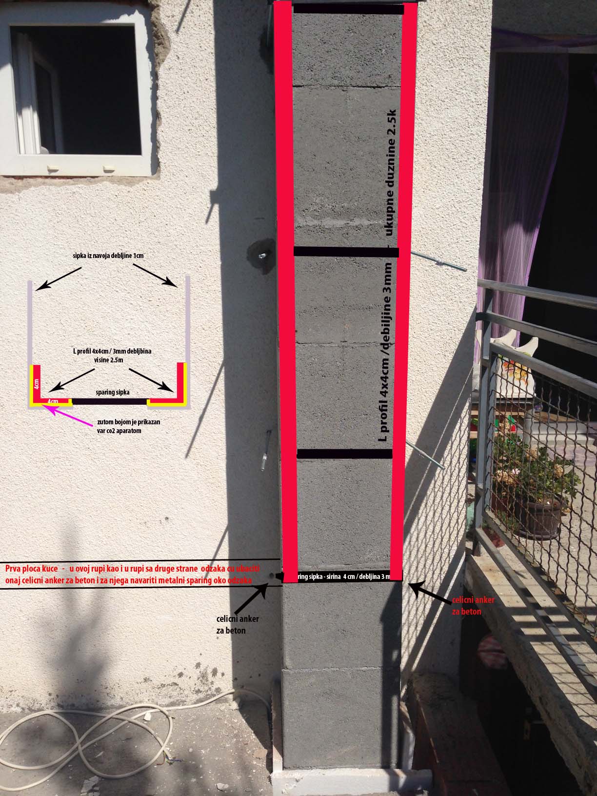 oba L proflia koji nalezu na ivicu blokova cu spojiti i zavariti metalnim sparingom (kako li sve cec zove) da ih povezem