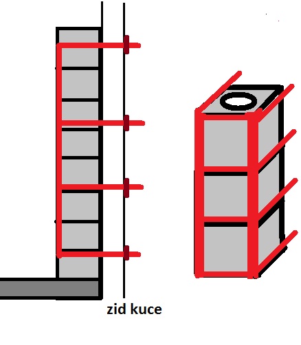 zidano je blok na blok, unutra vuna i cevka keramika i tako do vrha