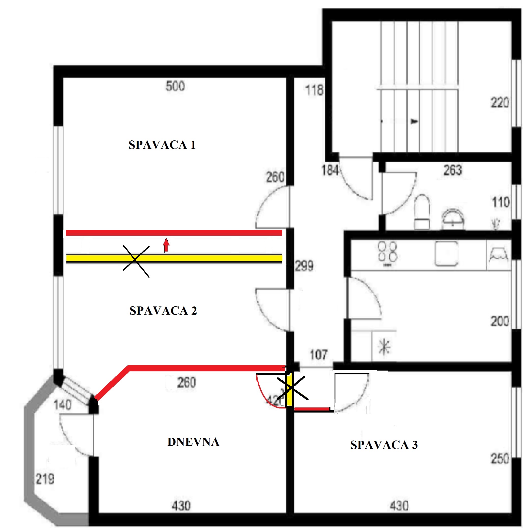 Najbolje je pregradjivati gips plocama. E sad postavlja se pitanje kako organizovati taj prostor. Prva ideja koja mi se javila da onu sobu 500x260 pregradite na pola i izbijete jos jedna vrata a ona koja vode i dnevnog boravka zatvorite ali to bas nije dobra ideja jer ta prostorija ima samo 11 m2 pa kada se podeli to je bas malo po mom misljenju. Verovatno ce se javiti jos neko sa boljam idejom.