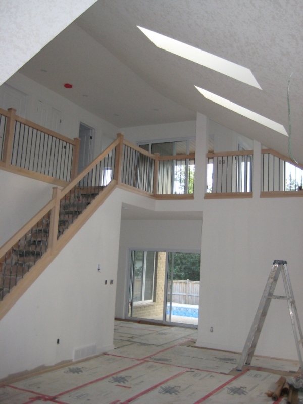 jos da mogu da stavim ogradu za stepeniste kakvu volim, e, onda bih bila zadovoljna! ograda mojih snova, koja ne sme po kanadskim kodovima da se stavi zbog horizontalnih prechki (moze dete da se popne pa da padne), a koja bi dala prostoru onu notu koja se trazi, izgleda ovako nekako, taj tip: