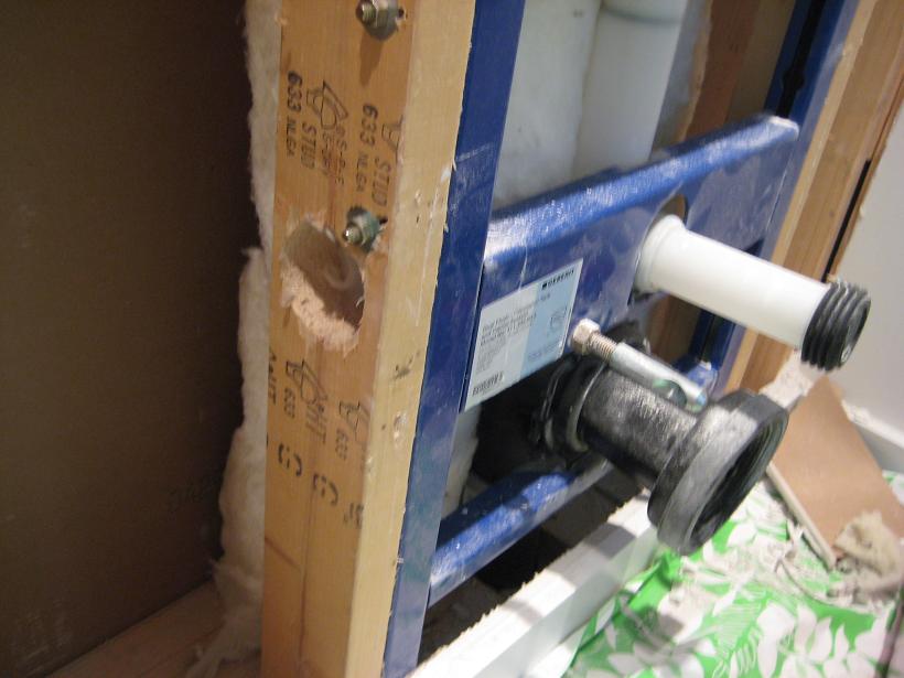 prvo ide slika pre popravke, a onda slika sada, i na kraju, slika sa razlogom: kretenoidno-idioticno-moronski vodoinstalater je pricvrstio konstrukciju wc-a na stubove 2x4 incha (5x10 cm) iako u uputstvu izricito kaze 2x6 (5x15 cm), plus - instalirao je to na stub koji ima rupu od 6-7 cm, pa mislim, sta reci...