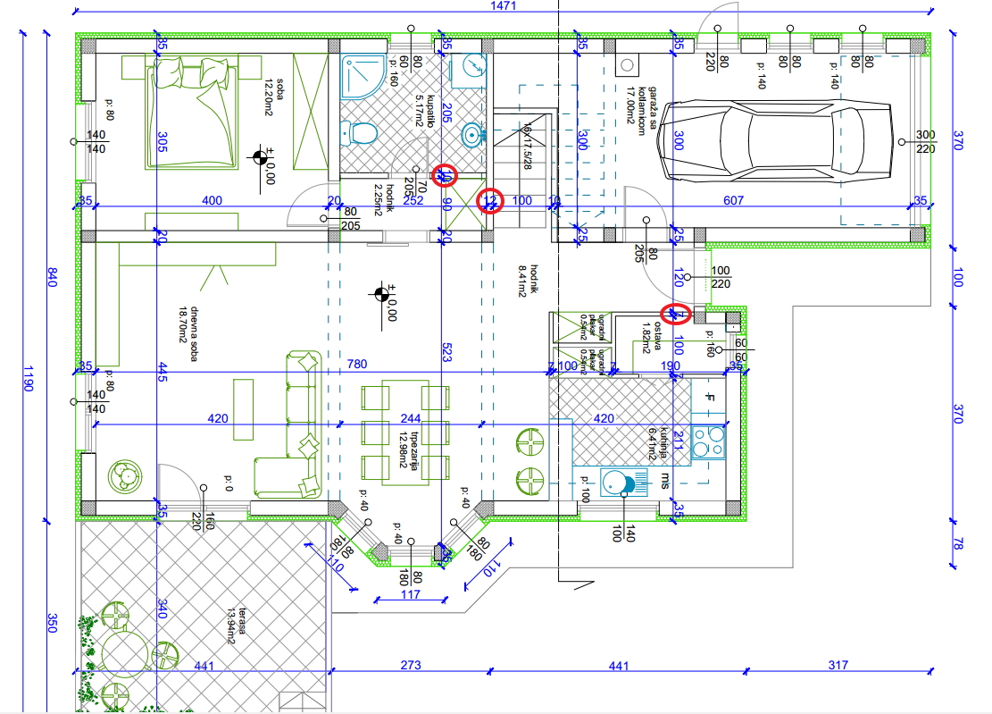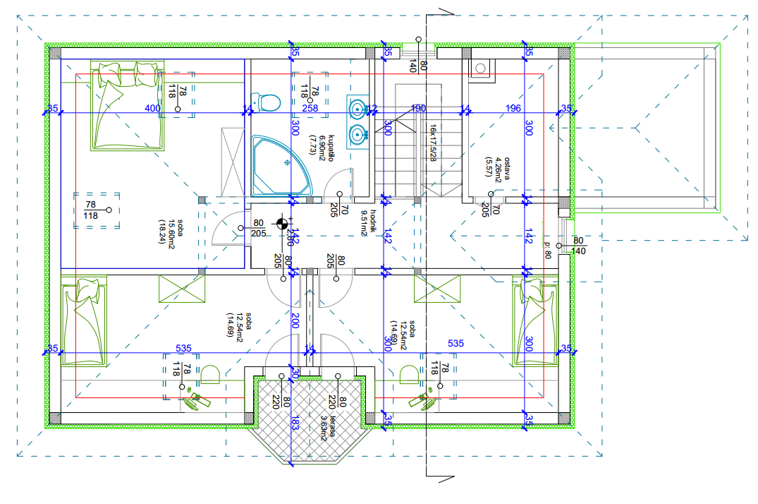 Da,dole sam računao do 95m2 sa terasom. Što kažeš to je moja želja. Nakon što završim plan, idem kod ljudi koje sam planirao za gradnju da daju procenu i što se tiče materijala i što se tiče rada. E onda ću videti da li su to samo lepe želje, pa ću morati da smanjujem, ili idem po planu.