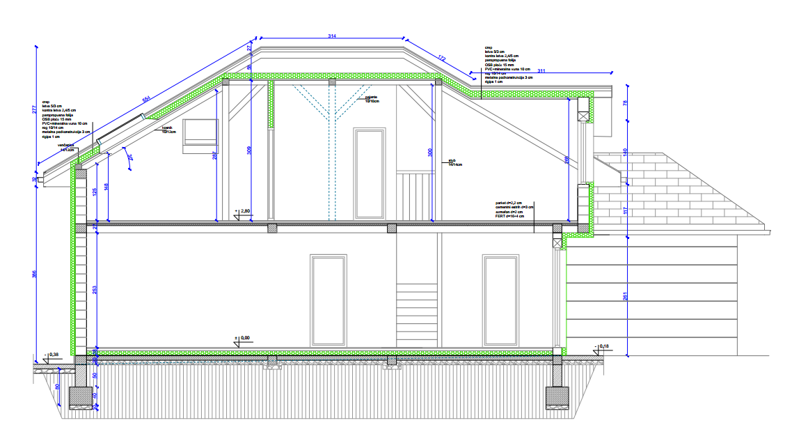 Naime, u potkrovlju su svi zidovi prema novom crtežu debljine 12cm.