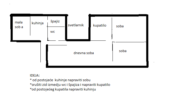 Ja bih pak postavio pitanje, ako vec pretvarate kuhinju u sobu, to znaci da ce te kuvati gde? Otkud znate da je u pitanju pregradni, a ne noseci zid? Kako cete izvesti strujnu i eventualno drugu instalaciju isl.