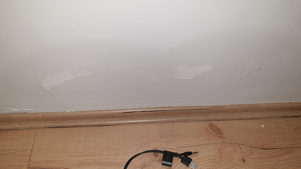 Dva problema su se pojavila ubrzo nakon sto je cela prizemna kuca renovirana od poda do plafona, bukvalno smo sve uradili. Novi krov, nova limarija, izolacija, gips unutra, kosuljica dole, nivelacija i hidroizolacija kao i novi laminat. Prve dve slike su dva zida koji su na dnu poceli da pokazuju znake vlage. A treca slika je kako taj ugao trenutno izleda spolja. Ja pretpostavljam da je to sve isti problem jer spolja jos nismo nista uradili, a planiram da popravim taj beton, stavim neku hidroizolaciju i napravim jos veci pad koji vodi od kuce, a posle plocice i da dignem coklu.