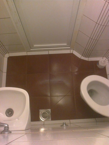 Čuj utrefio!?Pa,ja se ubio mereći,Wc-šolju sam postavljao pomoću podeonog aparata,njene koordinate geometarskom preciznošću odredio još pre par godina pre temelja(ima negde i slika) a on meni "utrefio"...
