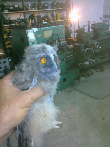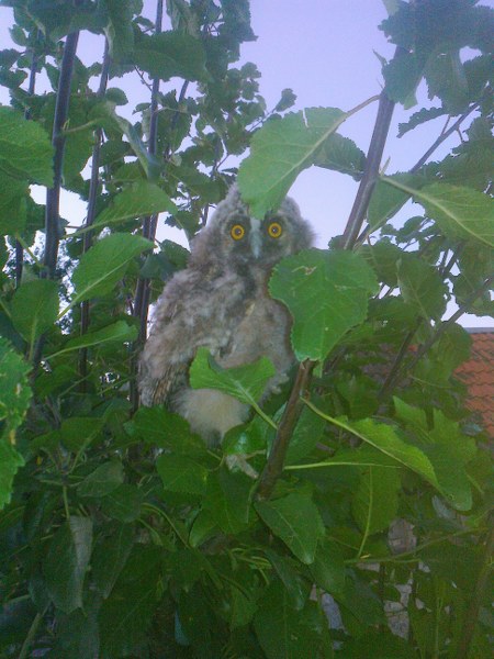 A goluždravo malo sovče bežeći od svrake sletelo na onaj šrafštuk napolju...