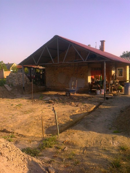 Zasad da stavim pod krov pa ču se posle unutra lako organizovat.U principu ovo če biti negrejani deo,na njega prebacujem ona velika garažna vrata sa radionice koja ću prepraviti u klizna a na radionicu čemo staviti nešto manje i kvalitetnije pošto na jesen ide izolacija 10 cm spolja i na kuću i na radionicu.