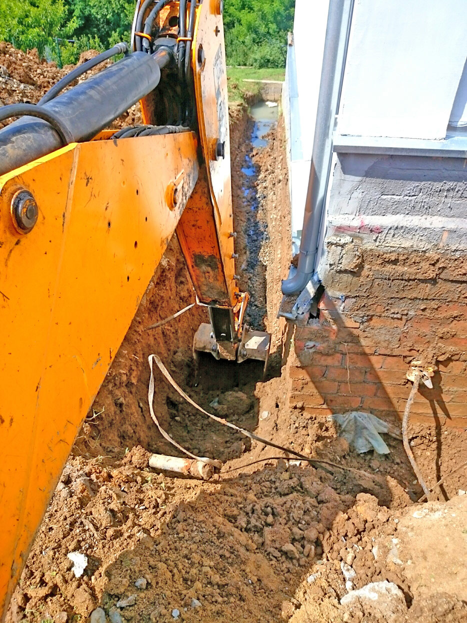 Tehnički rov koji ste iskopali mora biti pokriven i poduprt jer će radovi trajati više dana , drugo sve olučne vertikale morate odvesti od kuće par metara dok se bude radilo .