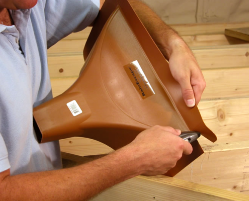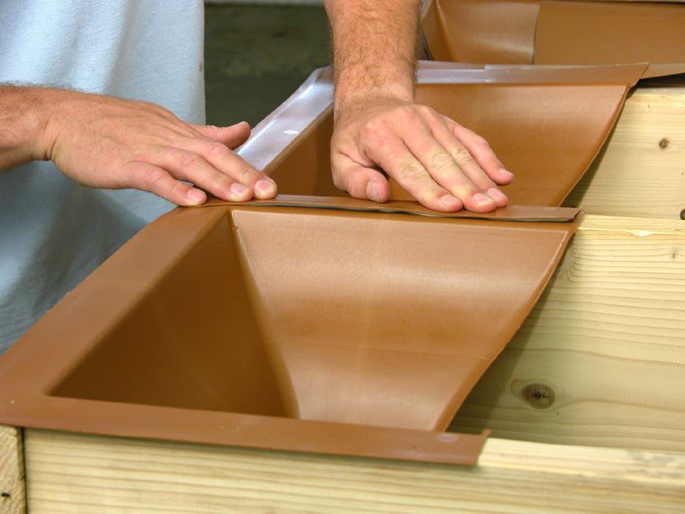 Gledajući po net-u za ovu namenu postoje razvijeni namenski sistemi. Nije samo nabavka odgovarajuće folije problem već i ulivnih sifona, verovatno i početni komad do zida... Teško ovo da se napravi sa raspoloživim materijalom dostupnim na ovim prostorima, da bude jeftino a trajno i da valja.