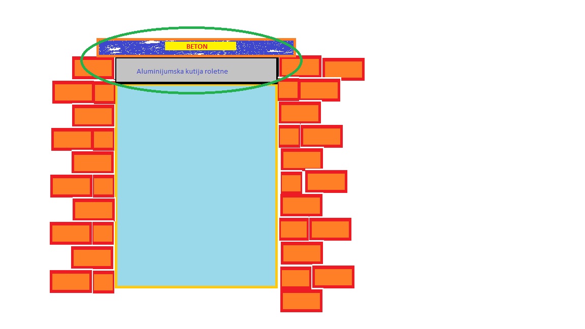 Kod mene su ostavljeni otvori iznad prozora za kutiju roletne. Imam dovoljno prostora po vertikali, po horizontali je 25 cm debljina zida. Nemam prostora za oslanjanje kutija roletni sa strane.