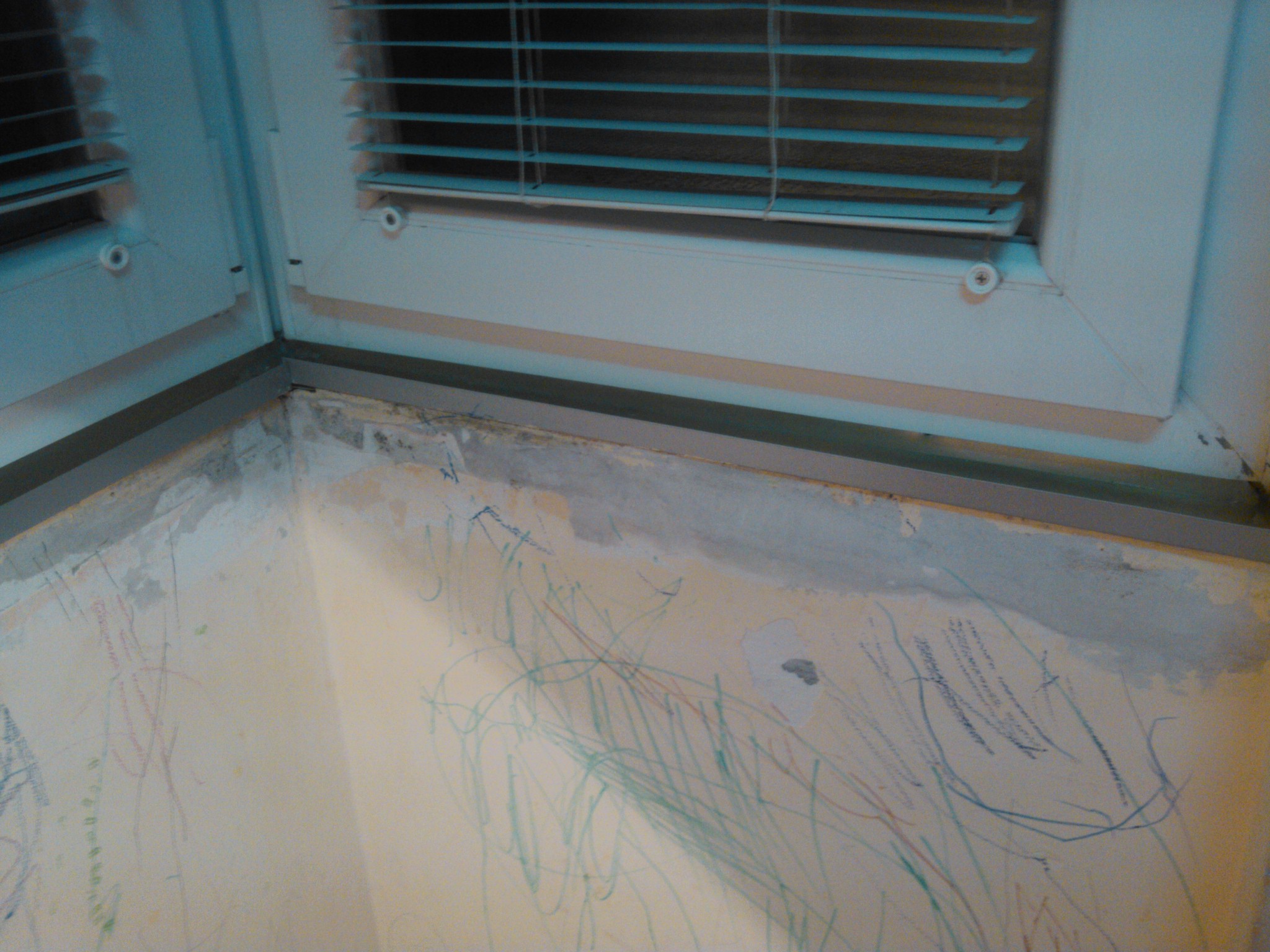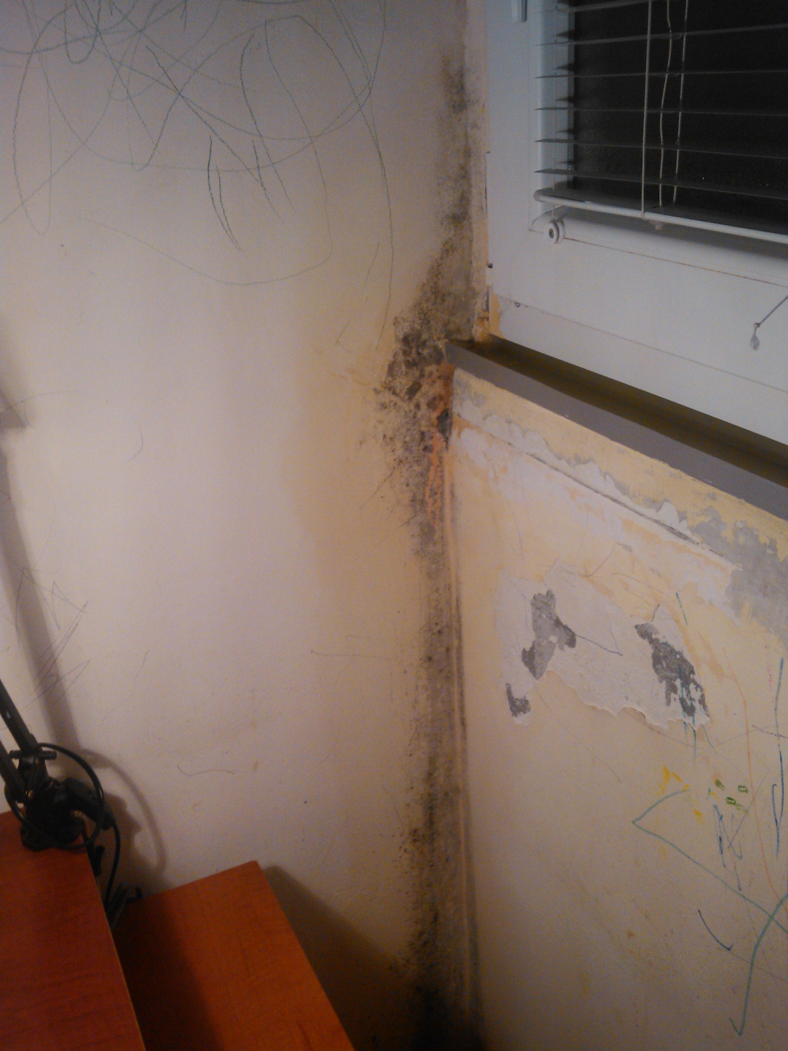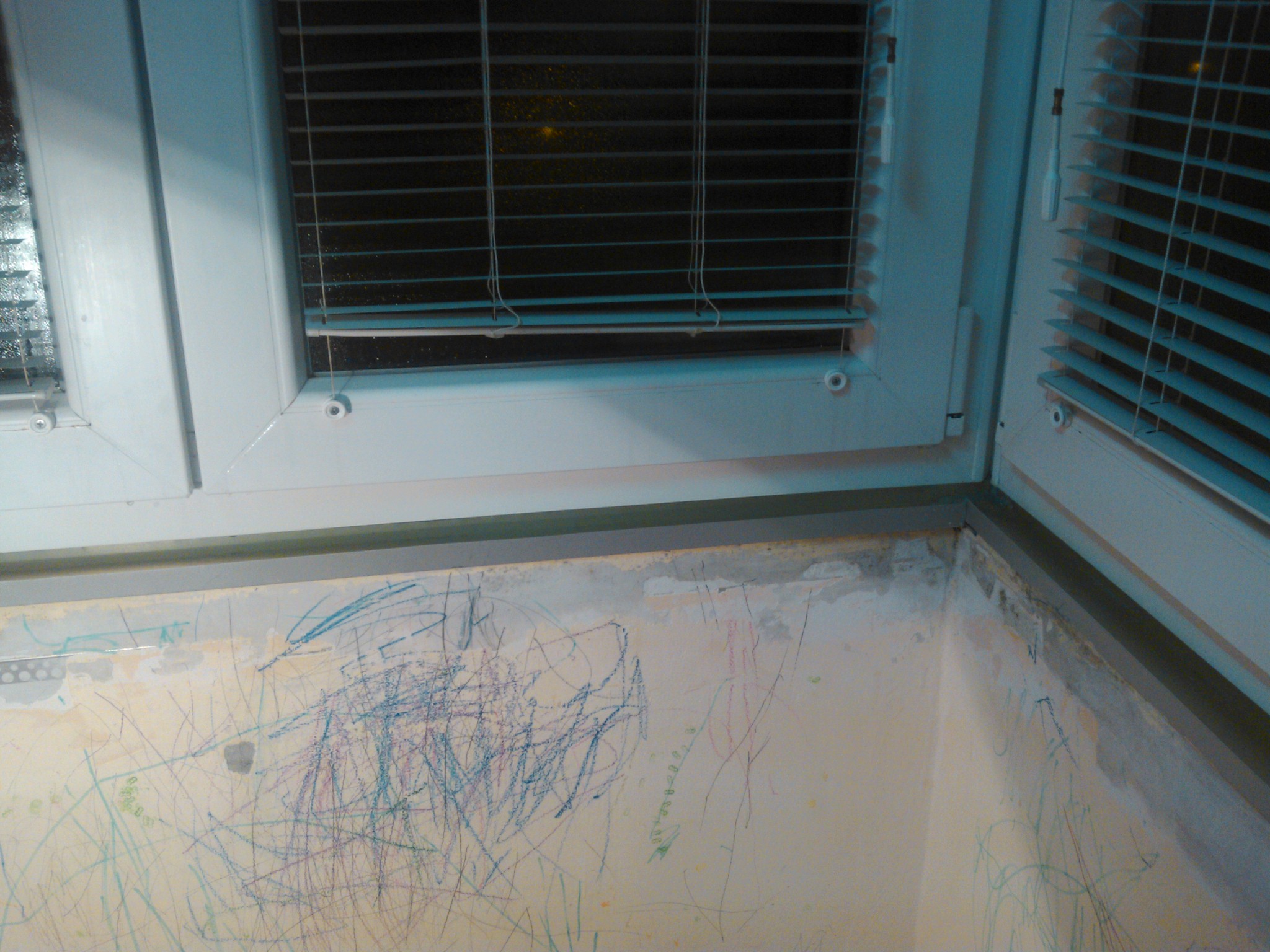 i zimus sam drzala PVC prozor na "kip" da ne bi bilo previse vlage. Terasa je na jugo-zapadu. Vlaga se javlja po coskovima tog zida "crveno oznaceni delovi". Cinjenica je da udubljenje postoji kao sto se vidi ali s obzirom da su davno postavljene plocice sa coklom, do poda se ne moze nista stavljati, ali ni do plafona jer u gornjem delu tog zida je prozorcic celom duzinom tog udubljenja.