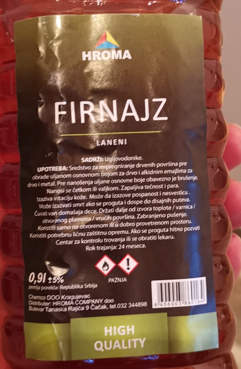 Hroma Firnajz, smrdi na benzin kao djavo. Zelim da premazem nekoliko dasaka koje ce drzati pesak za decu.